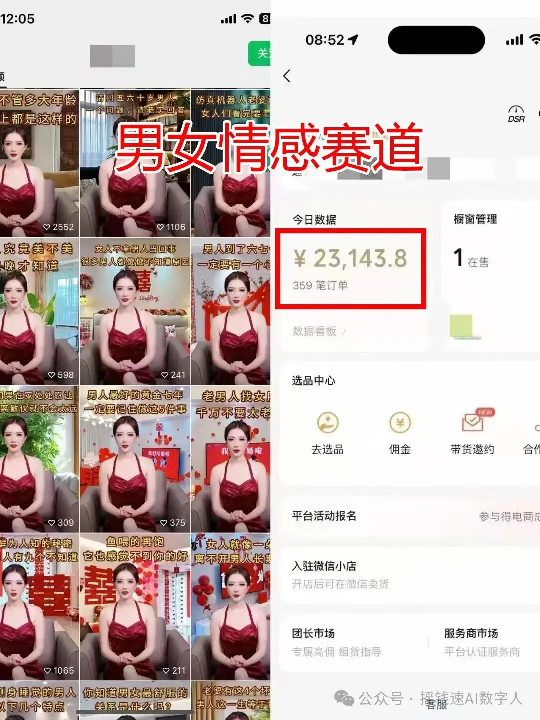 9、情感赛道:用AI数字人批量生成视频,通过卖相关书籍变现,实现了一个赛道三种收益模式(创作者分成计划、广告收益、橱窗带货收益),或者把公域流量引流到私域,转化客户赚钱。