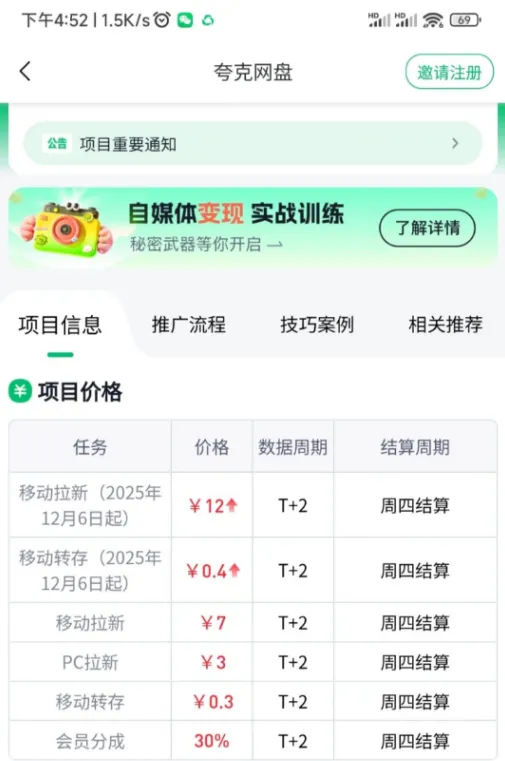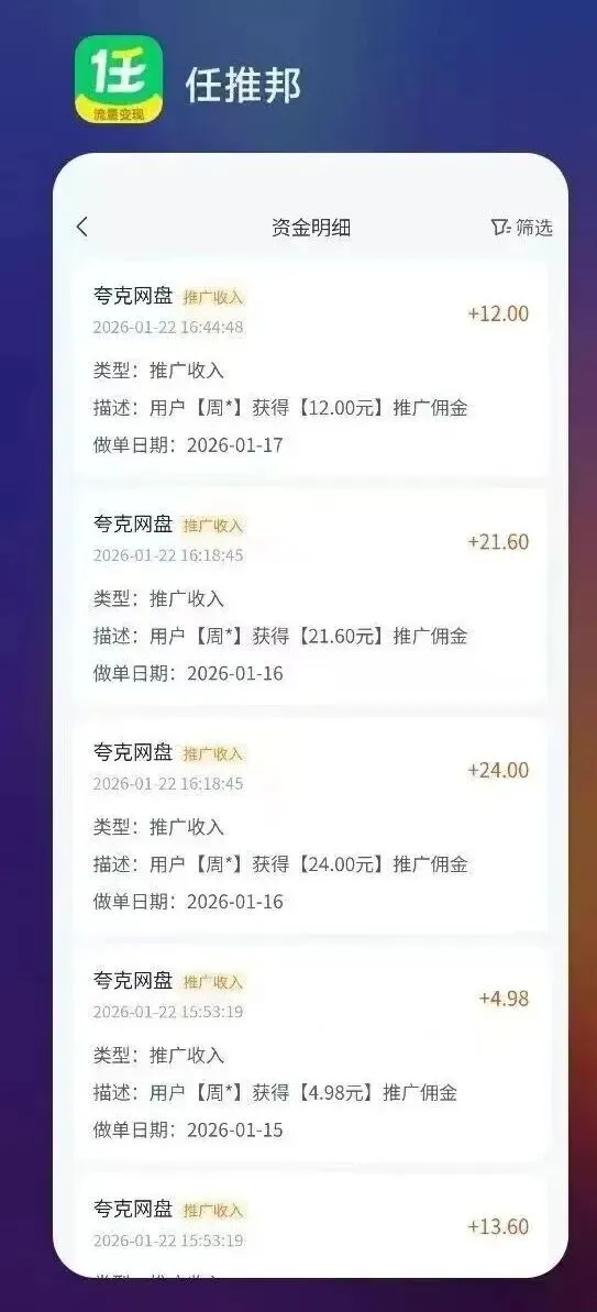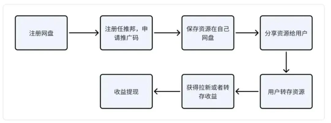 逻辑很清晰:你分享了一个别人需要的资源,对方通过你的链接注册、转存、充会员,三个动作依次触发,佣金叠加到账。