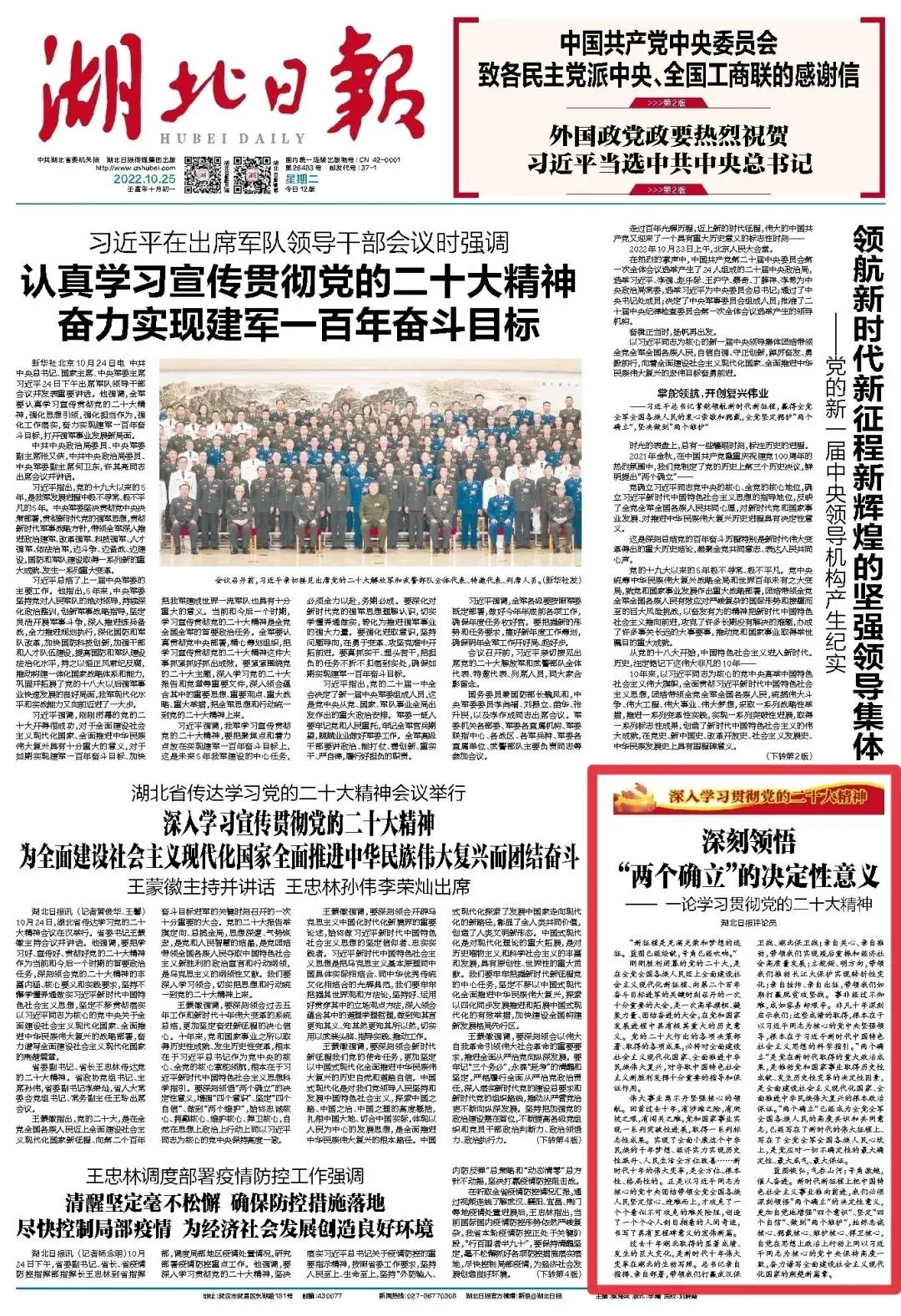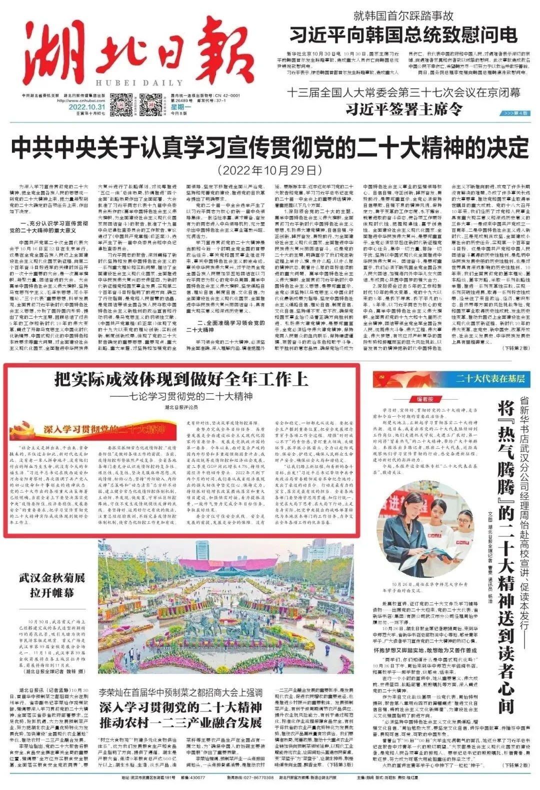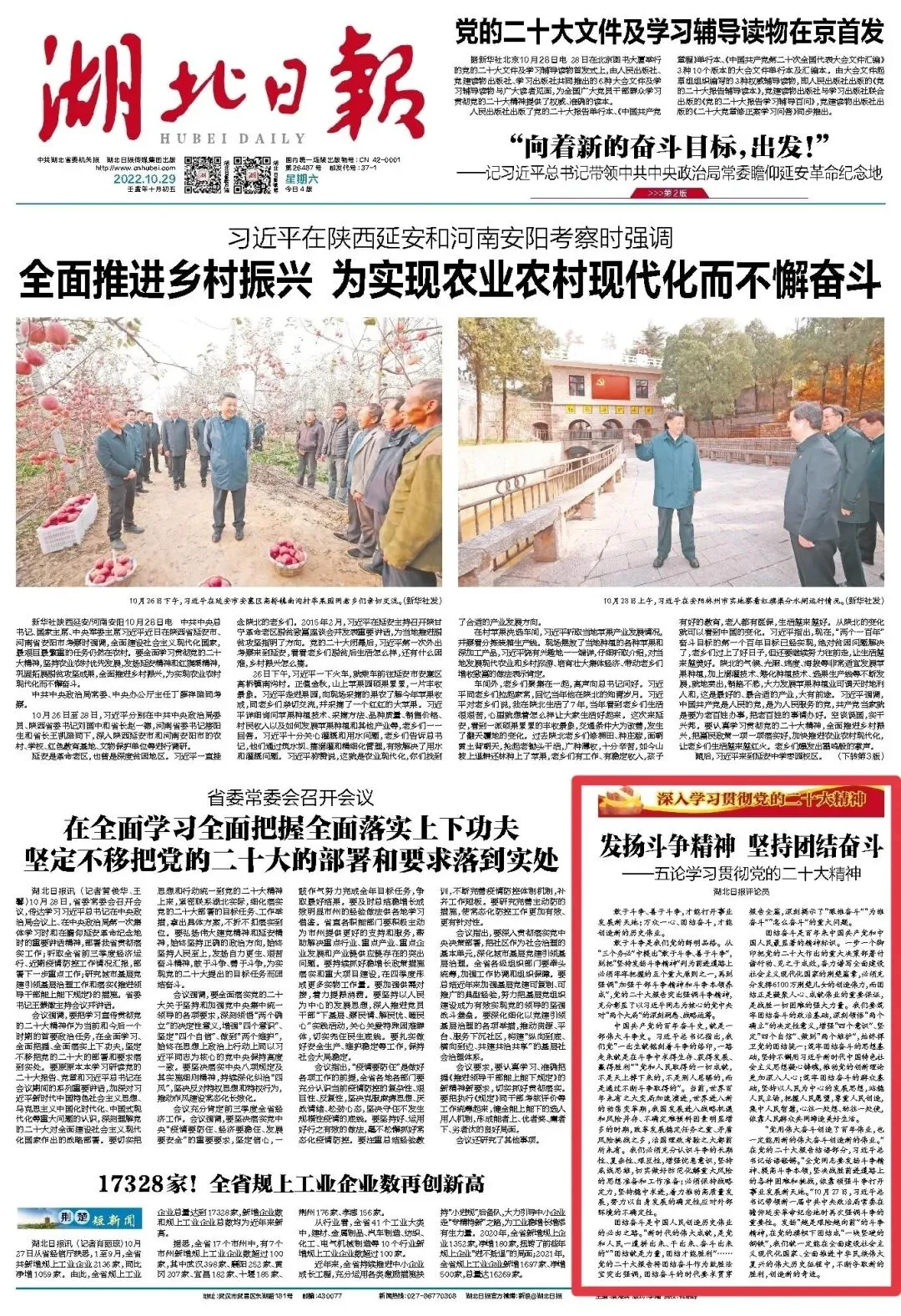 合集来了!湖北日报连发七论学习贯彻党的二十大精神