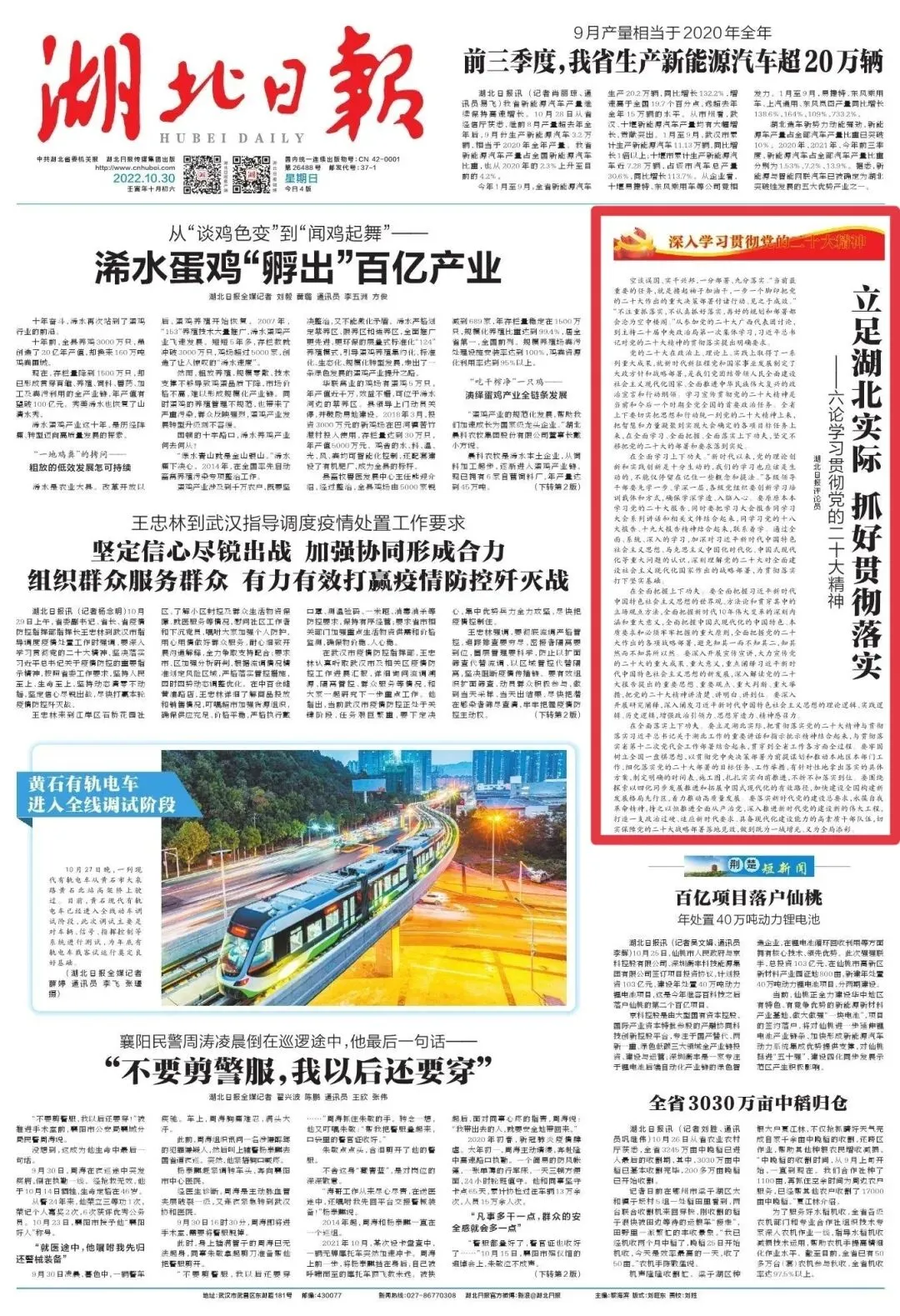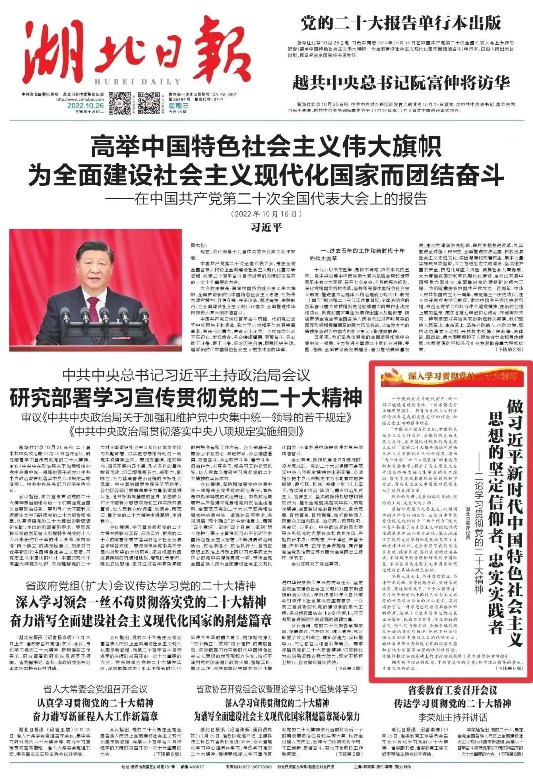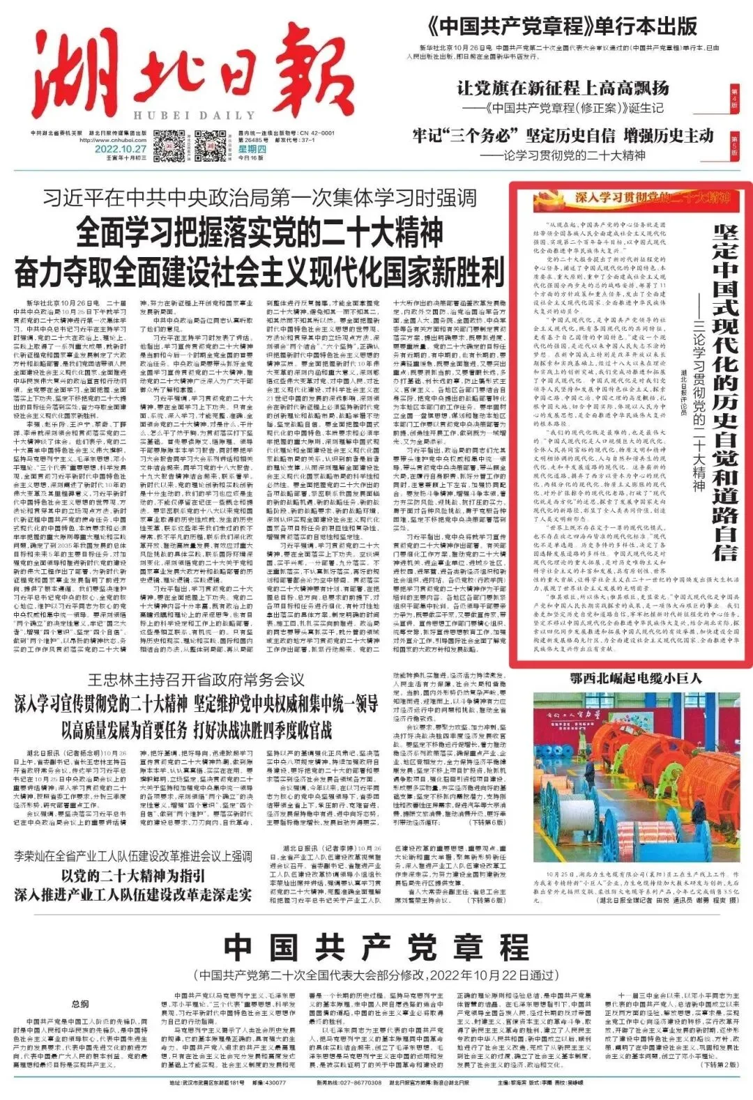 合集来了!湖北日报连发七论学习贯彻党的二十大精神