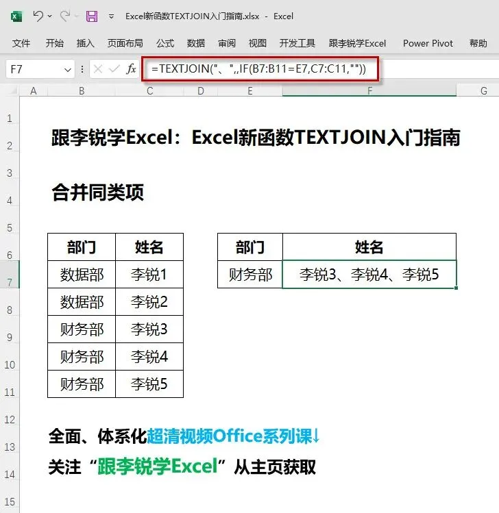 Excel 2019版本新增的TEXTJOIN函数,用于按照指定的分隔符,将文本合并在一起。