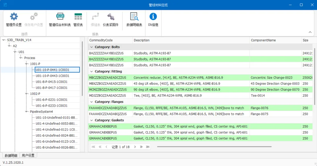 管道材料量设计过程比对,细化到Piperun层级材料增减 -