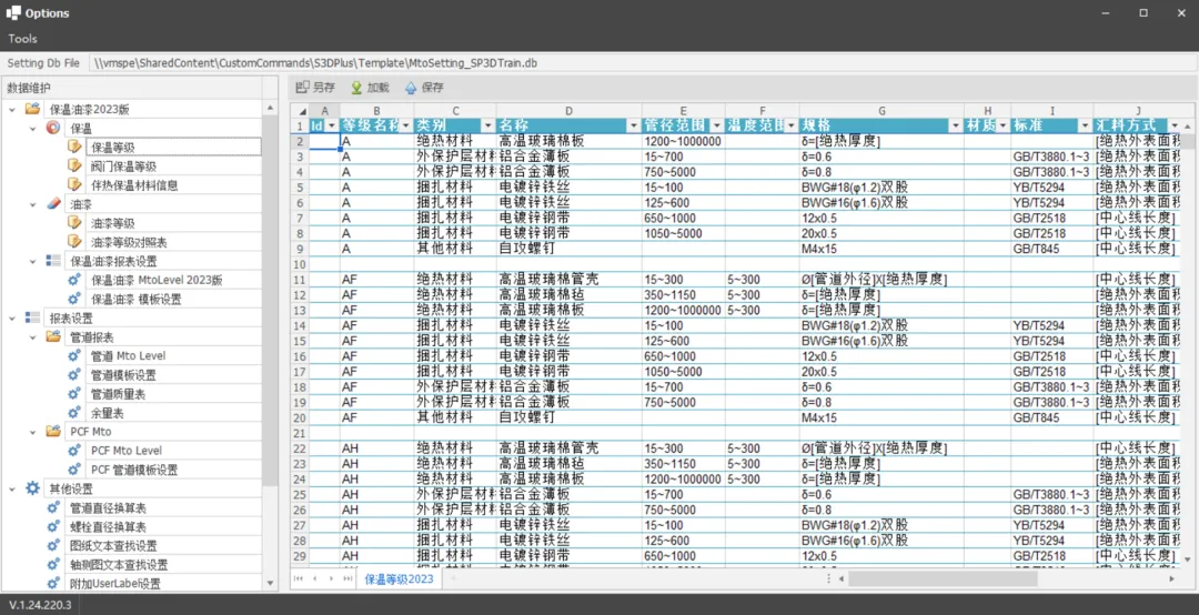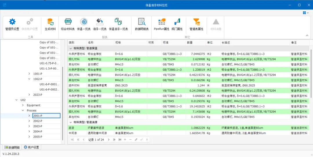 支持自定义绝热、涂漆材料统计规则,支持任意多的绝热材料分类(绝热材料、外保护层材料、捆扎材料、辅材等等) -