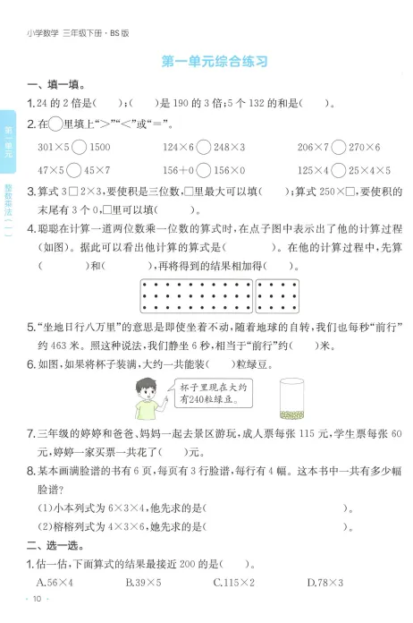 🏅三年级数学下册北师版26春《一本课后小练习》