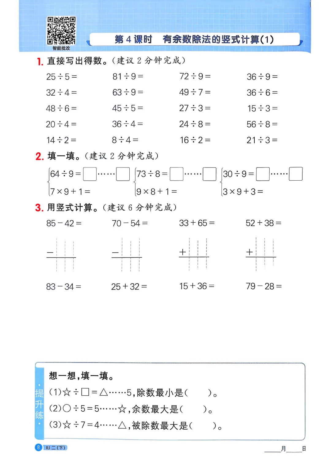 计算不丢分!二年级下册【计算天天练】|电子版可打印 关注我们 领取更多资料 🌈电子版可下载打印,需要的家长抓紧领取一份给孩子打印🖨️吧 (温馨提示:文末有完整电子版领取方式) 领取完整电子版: ①:点一点右下角的“赞”和“在看”,感谢 ②:首先【关注】公众号,再点【发消息】输入编号:39号资料 分享小学拔尖资料 爱润童心,智引成长