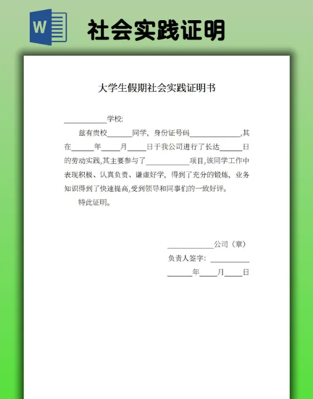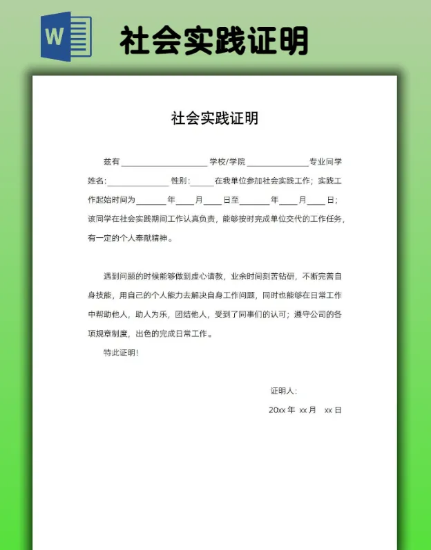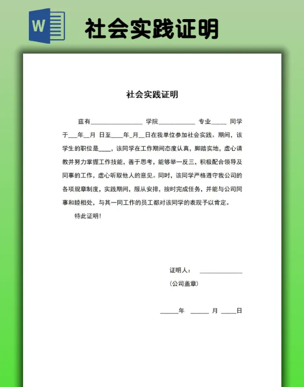 2026大学生社会实践证明模板(word电子版可打印)【免费保存】 本文内容分享2026大学生社会实践证明模板 👇网盘打包下载👇 https://pan.quark.cn/s/51fcc9db42af #实习证明word模板 #大学生实践证明表 以下是部分预览图展示 以上仅为部分预览图 点击左下方“阅读原文”,获取完整版