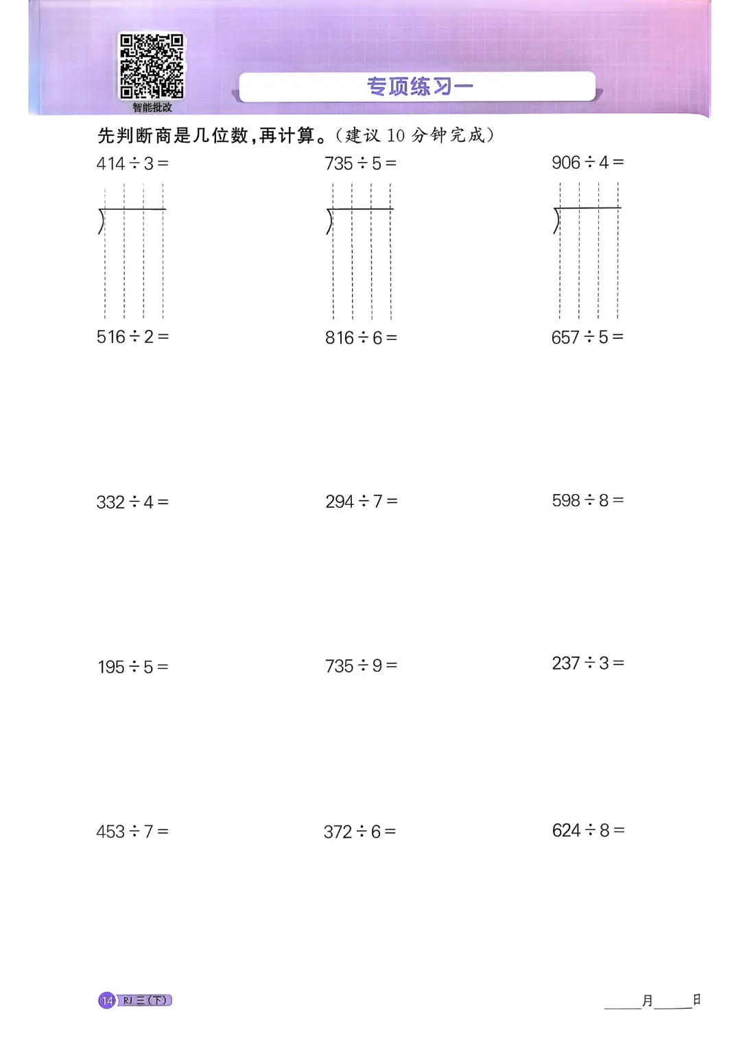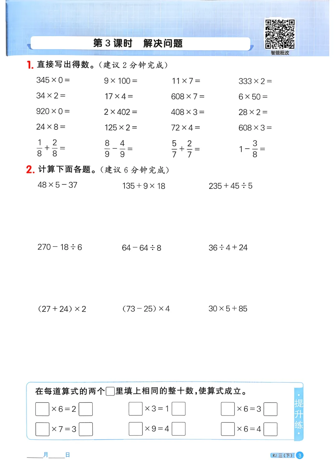计算不丢分!三年级【数学计算天天练】|可打印 「关注我们,领取更多学习资料」 🌈电子版可下载打印,需要的家长抓紧领取一份给孩子打印🖨️吧 (温馨提示:文末有完整电子版领取方式) 领取完整电子版: ①:点一点右下角的“赞”和“在看”,感谢 ②:首先【关注】公众号,再点【发消息】输入编号:39号资料 分享小学拔尖资料 爱润童心,智引成长