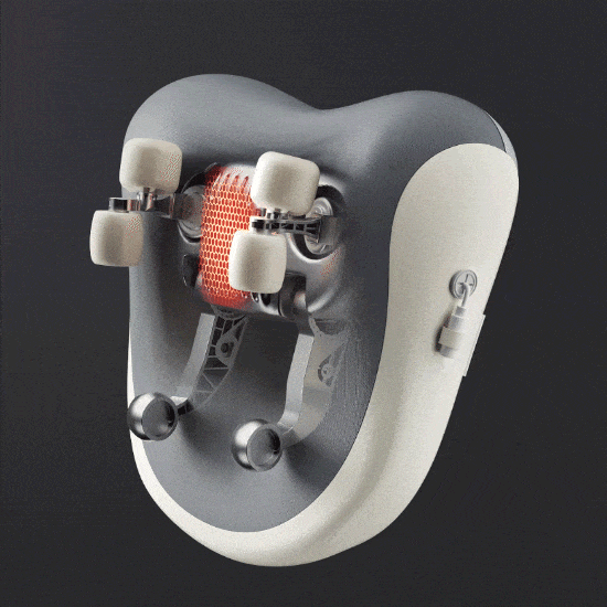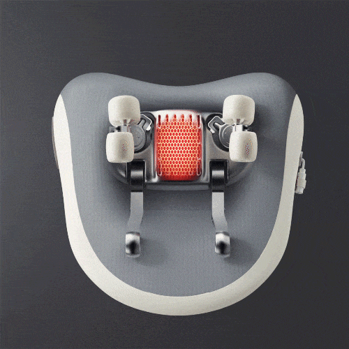 人体工学设计, 6个3D立体按摩头,分成两组,专门针对肩颈背上面的疲劳重灾区按揉
