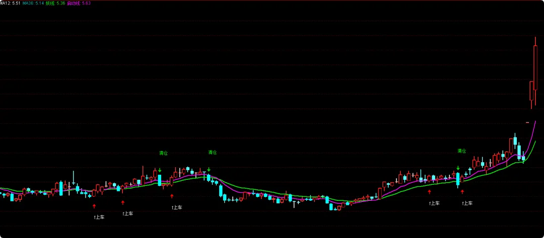 普通上车:=FILTER(CROSS(C, 启动线) AND C>妖线 AND 吸筹完成, 5);