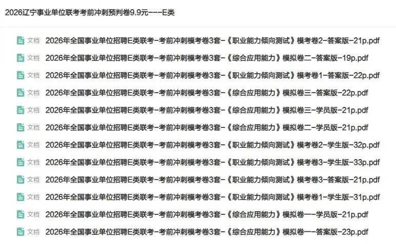 辽宁联考医疗E类考前预判卷.pdf 辽宁联考E类 考前冲刺预判卷 抢>9.9元领取 📝 辽宁联考3月29日笔试 医疗E类考前冲刺预判卷 仅9.9元-附答案文字解析 ▼ 辽宁联考 冲刺直播课 咨询联考冲刺课👇 -本文含课程等广告内容