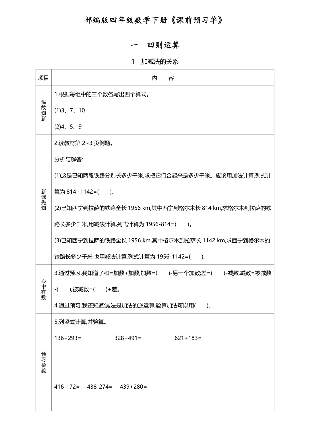 1-6年级 | 数学下册课前预习单PDF电子版(可免费下载打印)