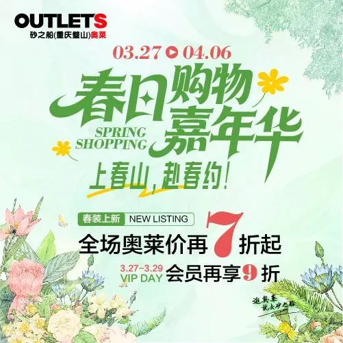 女装合集 | 一键 get 春日氛围感~ 春日购物嘉年华VIPDAY 奥莱价七折起 VIPDAY再9折 VIPDAY时间:3.27-3.29 整档时间:3.27-4.6 中大淑活动合集 少淑活动合集 内衣活动合集 –END– 更多活动详情 请到店咨询 砂之船(重庆璧山)奥莱 期待您的光临! VIP电话:023-64319888
