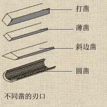 凿:锤子敲打以凿、刻等动作削去木料的表面。