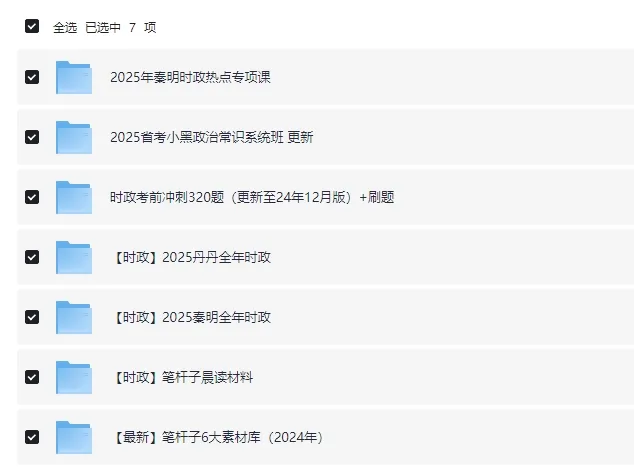 25省考国考全年时政资料合集(丹丹+秦明+小黑+笔杆子)等 「25省考国考全年时政资料合集(丹丹+秦明+小黑+笔杆子等)」 链接: https://pan.quark.cn/s/20347af13b94