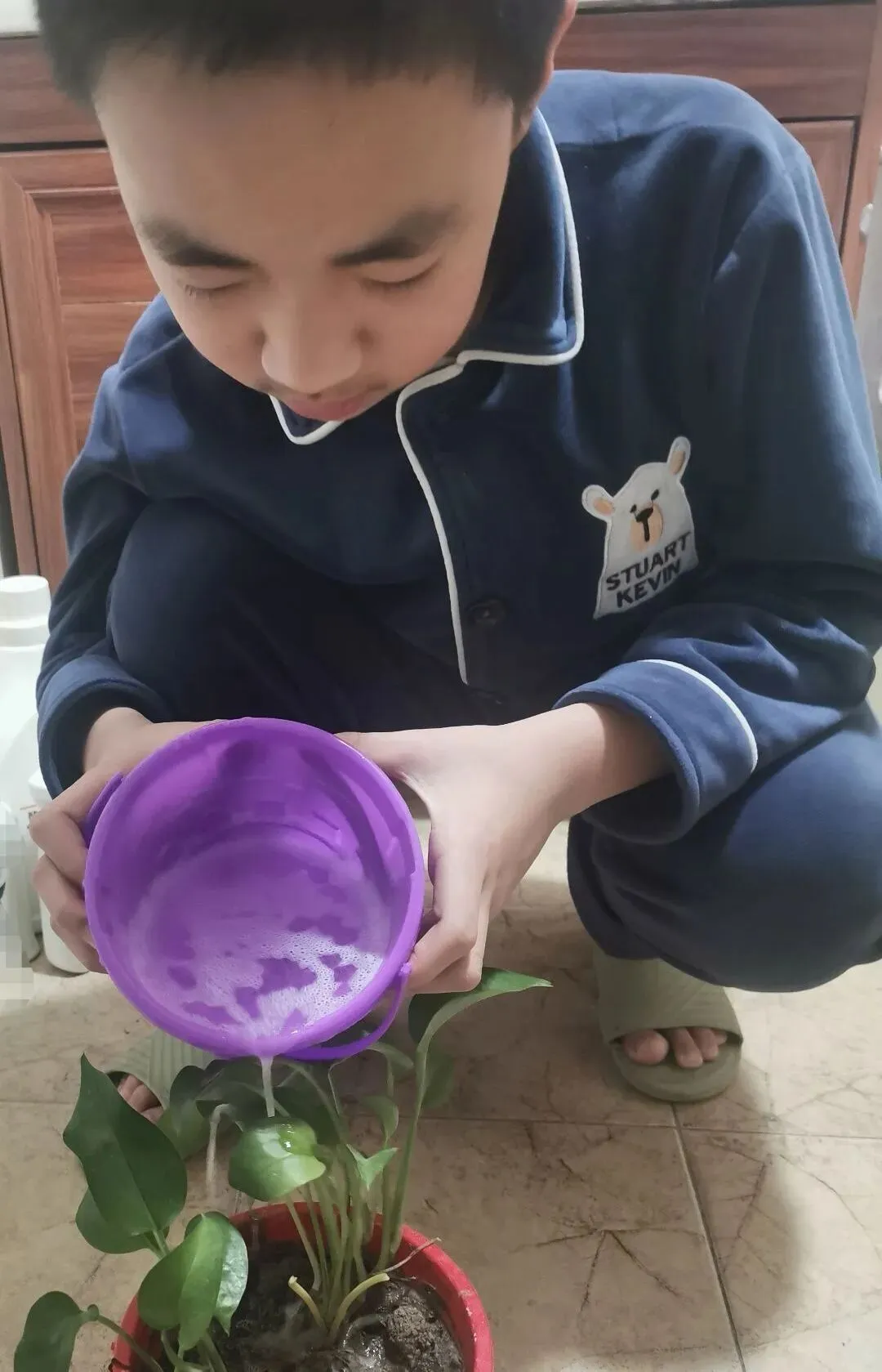 镜头定格节水智慧,创意记录绿色生活。同学们化身小小摄影师,利用课后时间捕捉家中的节水瞬间:淘米水浇灌绿植、洗菜水擦拭地面、洗脸水冲厕……一张张实景照片,不仅记录了生活里的节水小妙招,更让大家懂得节水藏在点滴日常中。