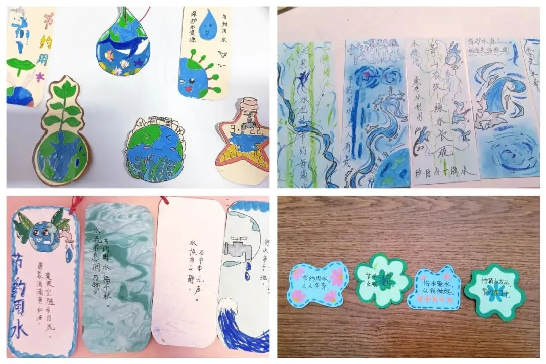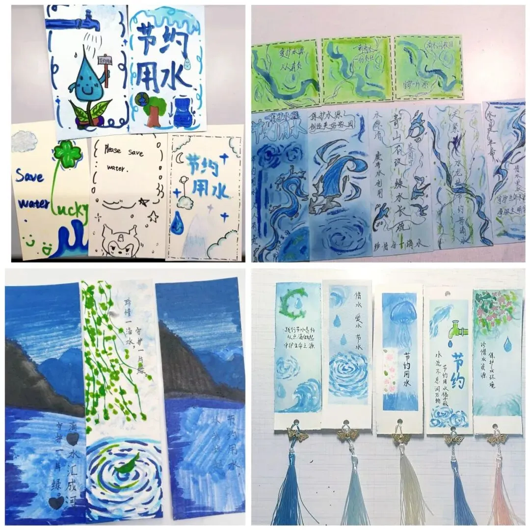 在“笔尖下的节水宣言”活动里,同学们挥毫泼墨、巧手创作,将对水资源的珍视融入书法、绘画、创意书签中。完成作品后,大家郑重签下自己的名字,化身“节水小使者”,带着作品走进校园,向其他同学宣讲节水理念,将亲手制作的作品赠予同伴,让节水的温情与责任在校园里传递。