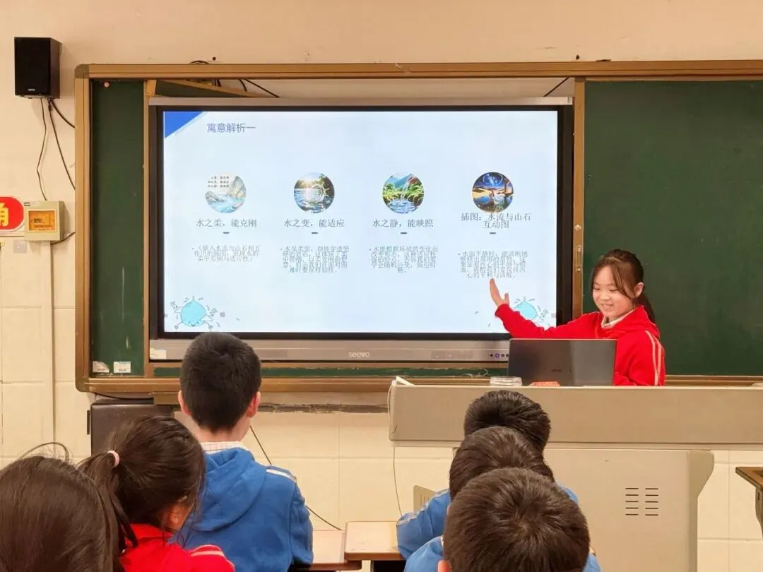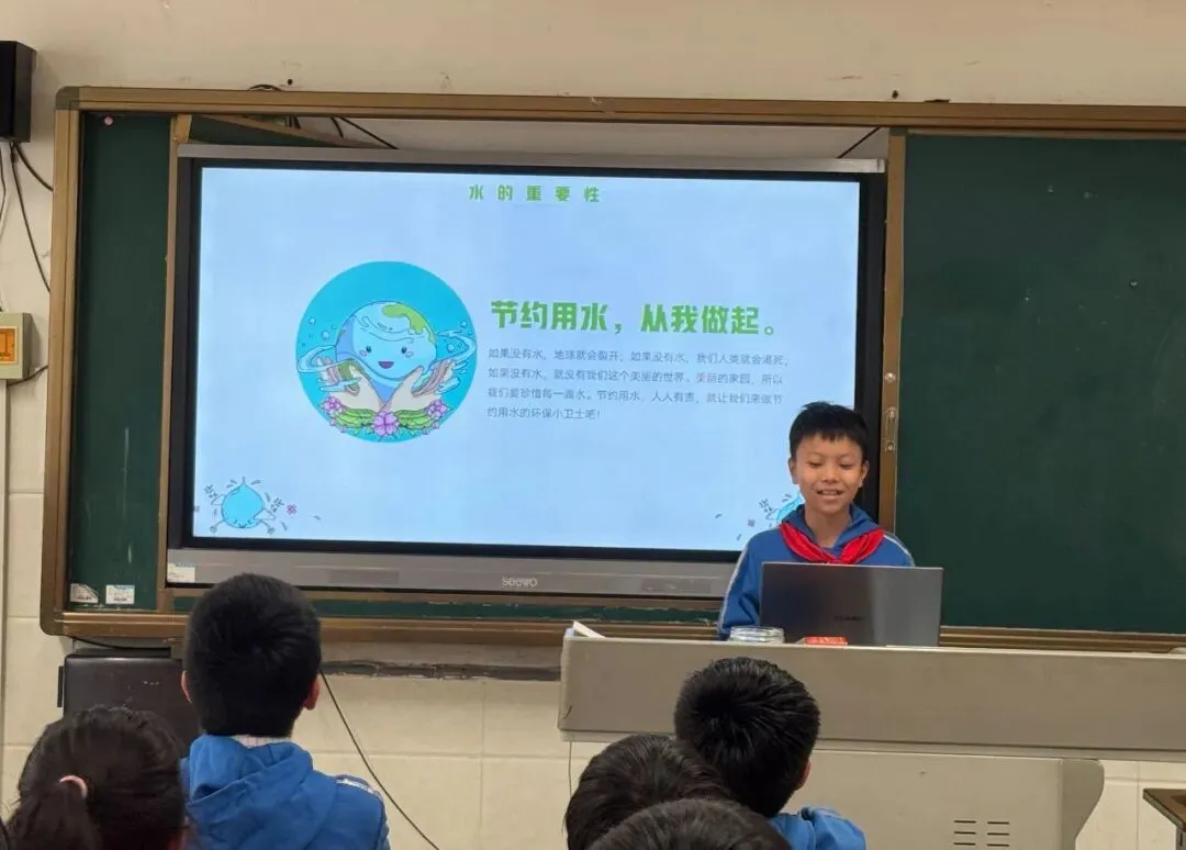 在这一环节中,宣讲员孟渲凯、段文斐化身小小讲师,提前搜集家庭节水技巧、水资源保护知识、生活节水经验等资料,精心制作PPT。课堂上,宣讲员们以同龄人的视角分享节水干货,生动的讲解让节水知识更易理解与传播,同伴间的交流让节水理念扎根心底。
