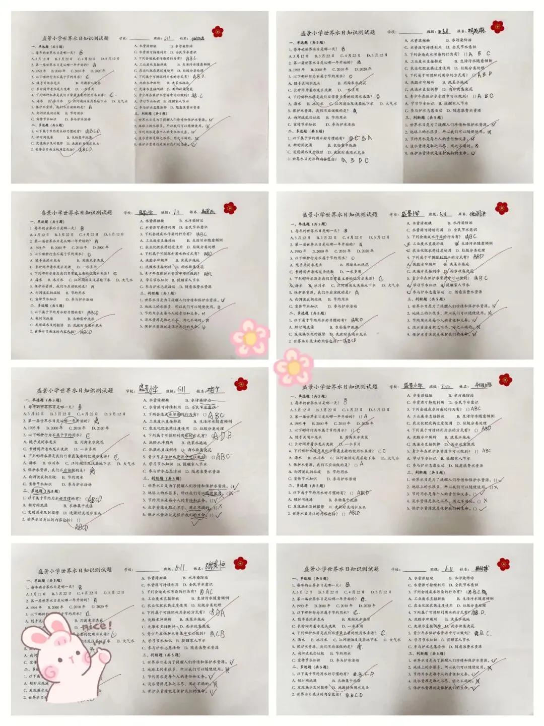 此项活动中,学生自主编写世界水日、水资源保护、节水技巧专项答卷,认真完成作答并以小组为单位互相批改。最终全班共同评选出满分奖、优秀奖,为获评同学颁发“节水知识小标兵”荣誉证书,在动手组题、互评互改的过程中巩固节水知识,实现了以评促学、以学促行。