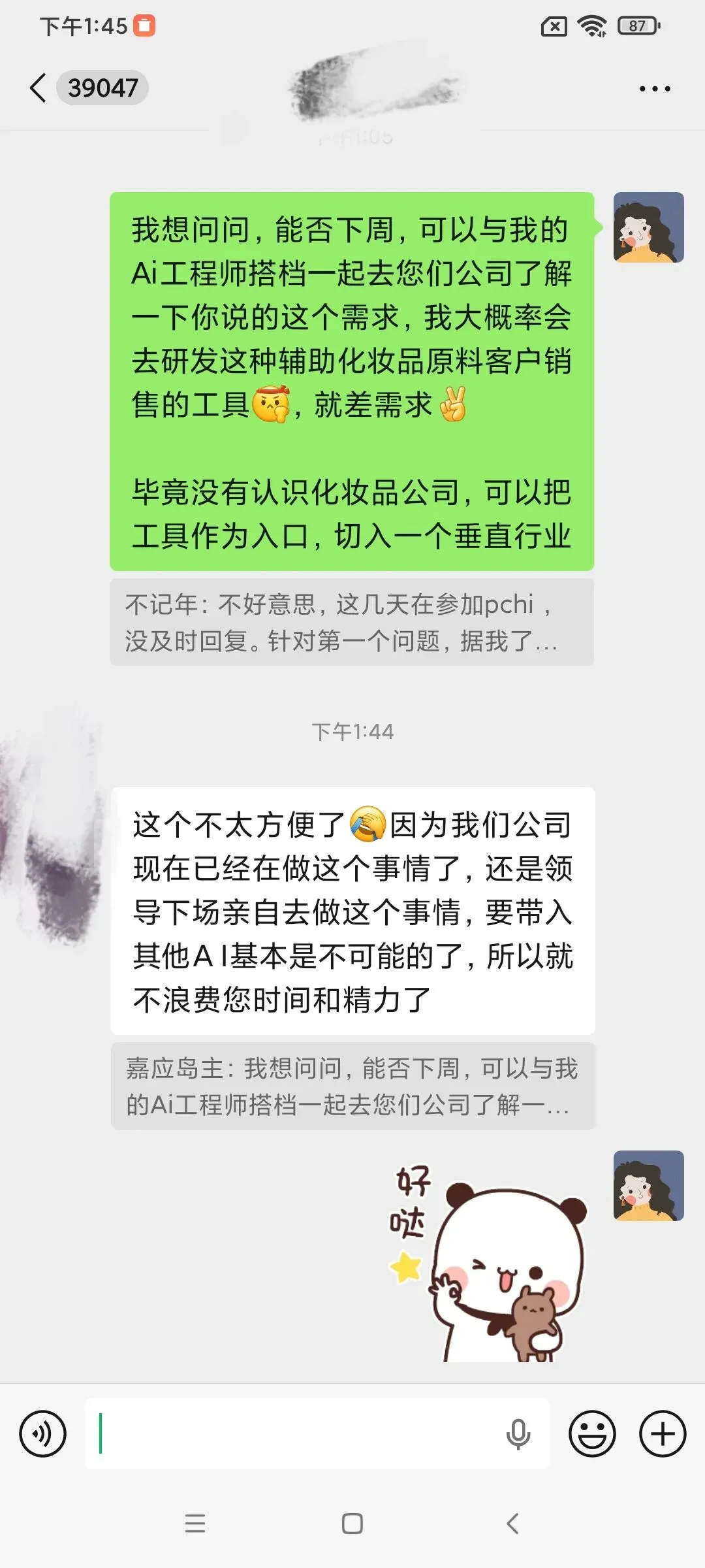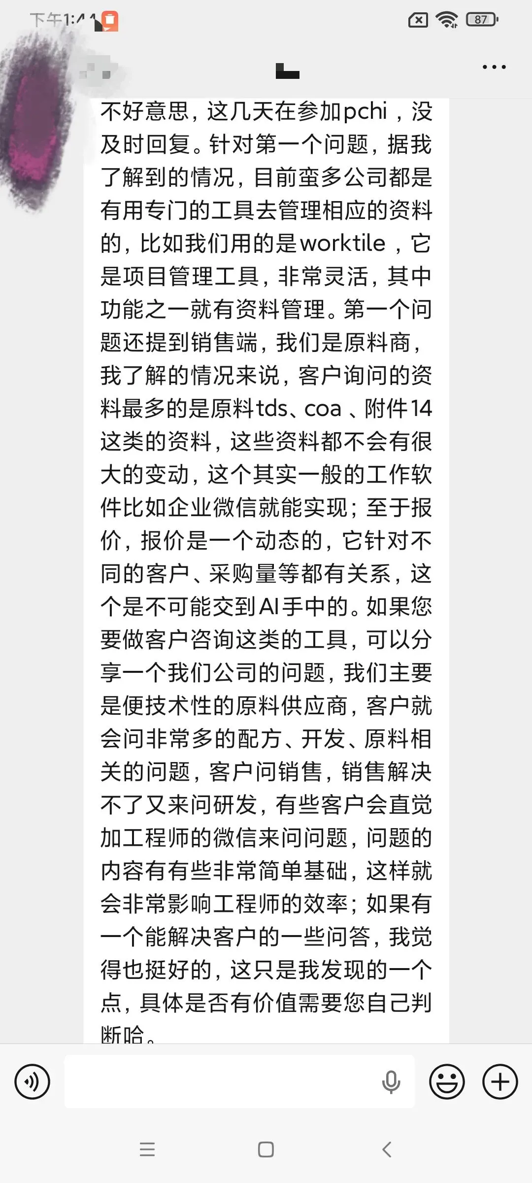如果你是偏技术性的原料供应商,客户就会问非常多的配方、开发、原料相关的问题,客户问销售,销售解决不了又来问研发,有些客户会直觉加工程师的微信来问问题,问题的内容有有些非常简单基础,这样就会非常影响工程师的效率;