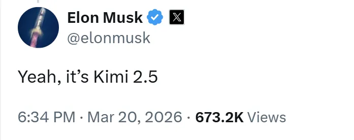 舆论瞬间炸锅。Hacker News、X、技术社区,到处都在讨论这件事。连马斯克也忍不住下场,直接甩出一句:“没错,这就是Kimi 2.5”。