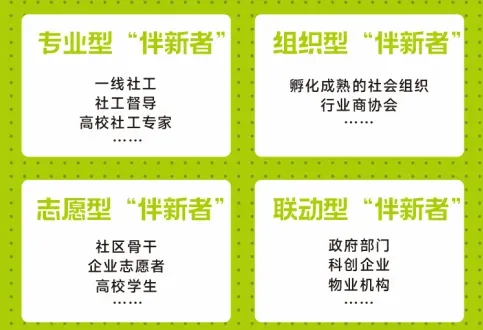“伴新者”:每一位深度参与高新社会工作服务、助力社会治理创新发展的多元社会力量统称。涵盖社会组织、企事业单位、政府部门、行业商协会、高校团队、行业专家、专业社会工作从业者、研究智库及公益个人等。