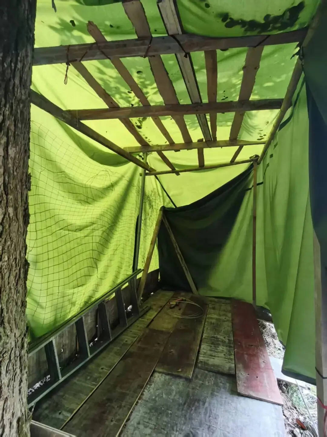 家里当家的,前前后后花了好几天实地勘察,又连着几个晚上细细规划,最终把位置定在了院子的西南角。这里靠着树、挨着围栏,刚好能利用上现有的资源,家里闲置的钢管、旧木条也派上了大用场。