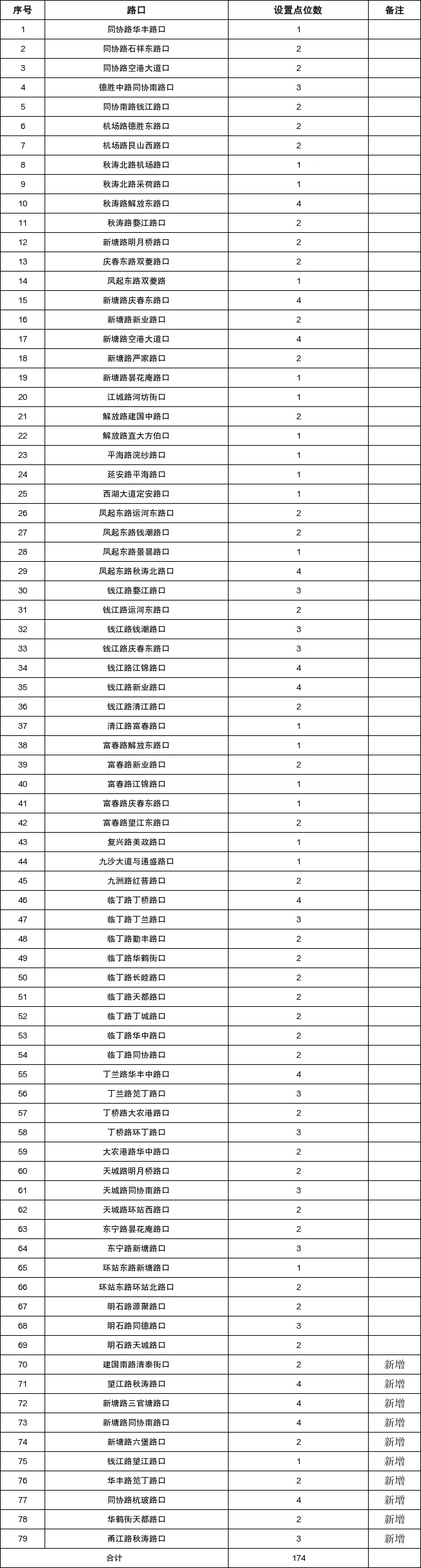 由于2025年安装的155顶遮阳棚中,部分点位存在树荫遮挡等情况,经排摸,计划取消其中的9顶,另有今年新增(调整)的点位共计28顶。现将174顶确认安装的点位进行公示,在此基础上,如市民朋友还有设置需求和意见建议,可于3月30日前发送电子邮件至hz85175529@163.com。