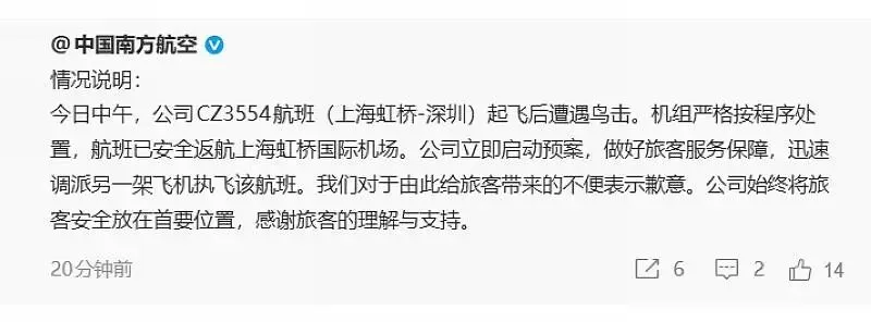 南航关于CZ3554航班的情况说明!