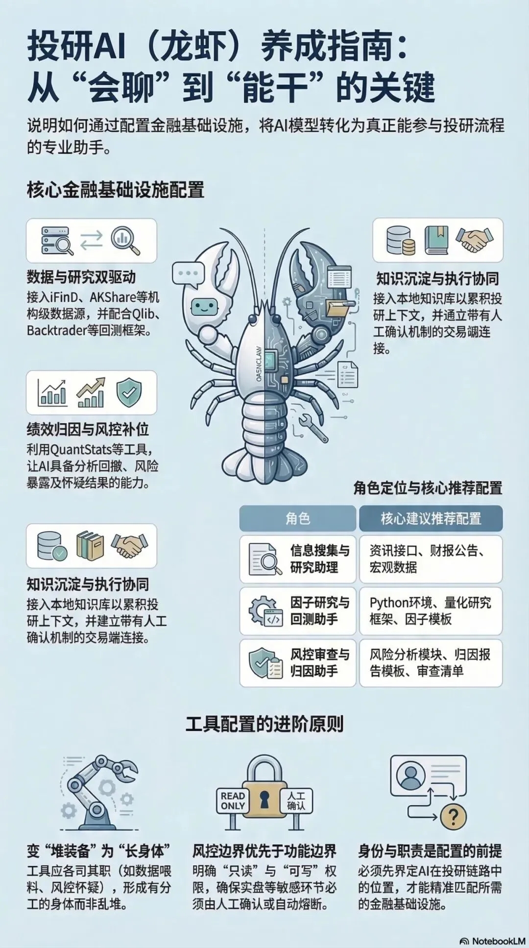 真正养得好的投研龙虾,不是天天越权去碰最危险的东西,而是: