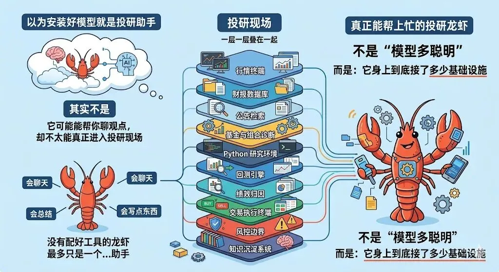 投研龙虾不是靠一个模型养活的,而是靠一整套基础设施养活的。