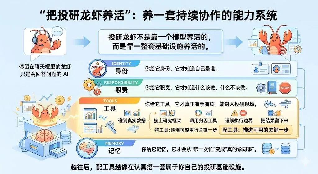 如果把这件事说得更直白一点,想把一只投研龙虾养活,通常绕不开四步: