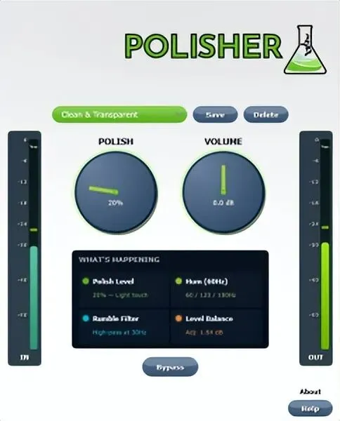Seaside Clean 是一款英式清音放大器模拟器,能够重现从完全干净到即将过载的各种音色。该信号链模拟了输入级、两级前置放大器(包括包络响应压缩)、切频式(Cut)风格的音色堆叠,以及基于 EL84 的功率放大器结构,从而提供低频和高频的饱和特性。它支持四种箱体模式——默认(standard)、明亮(bright)、温暖(warm)和旁通( bypass)——并通过平滑的交叉淡入淡出进行切换。过采样率最高可达 8 倍,可自适应会话采样率,并且包含混响,支持干/湿信号并行混合,和输入/输出电平表功能。此外,它还提供预设系统。Seaside Clean售价:60 美元(限时优惠:使用代码 DRIFTLAB 仅需 30 美元)Seaside Clean官网:https://driftlabaudio.com/seaside-cleanPolisher — 信号处理(免费下载)