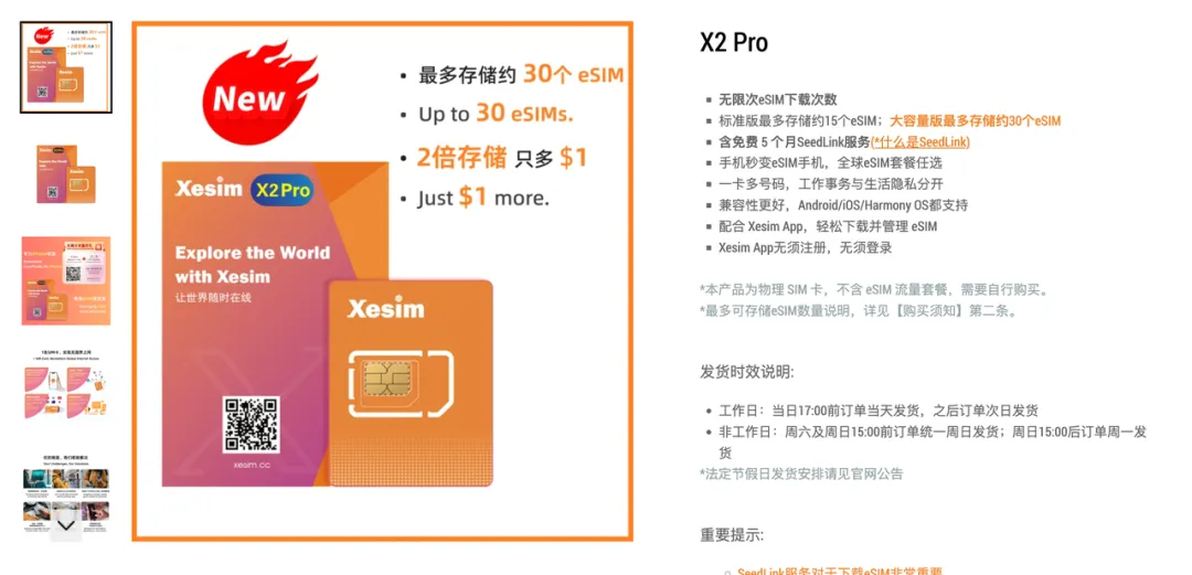 别花冤枉钱换海外版手机了,插上这块小芯片XeSIM,普通手机秒变国际版。可以写入30张eSIM卡。