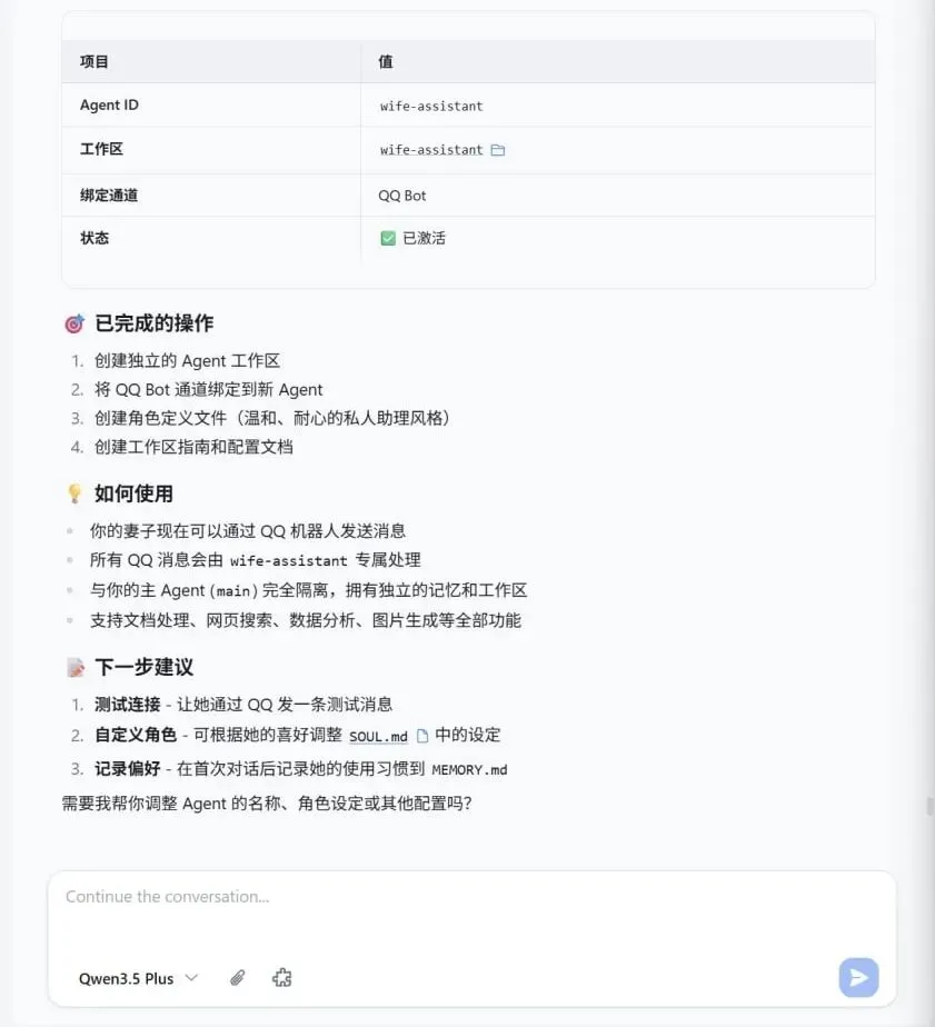 2025年入手了一台32G+1T的零刻桌面主机,新年这个存储价格疯涨,倒是凸显了这个小主机的性价比。在Android上配置和调试好了Openclaw之后,便着手迁移到了我这台AI PC小主机上,迁移过程也非常的简单,直接让Openclaw给出迁移方案,花了二十分钟便完成了整个迁移过程。为了减少我老婆的工作压力,直接给老婆创建了一个独立的智能体Agent,专门协助她完成工作里的各种写材料的活。最新已经在着手将量化部门的一些技术配置到我的Openclaw上,有兴趣的朋友也欢迎大家一起来多多交流。