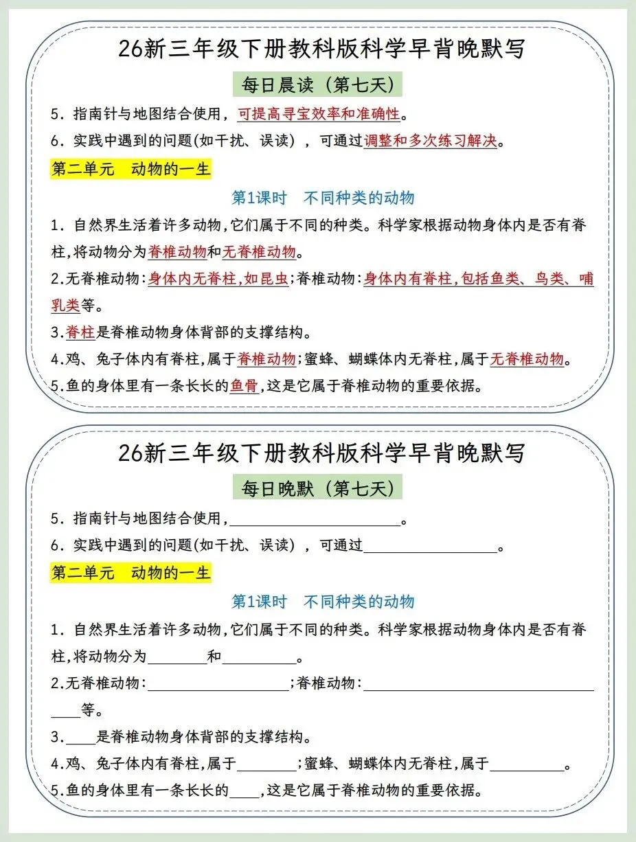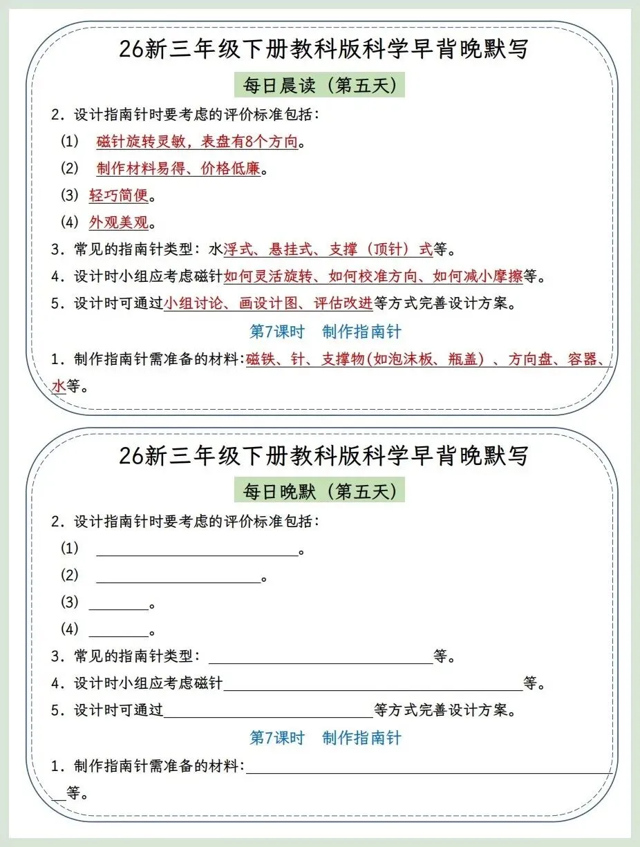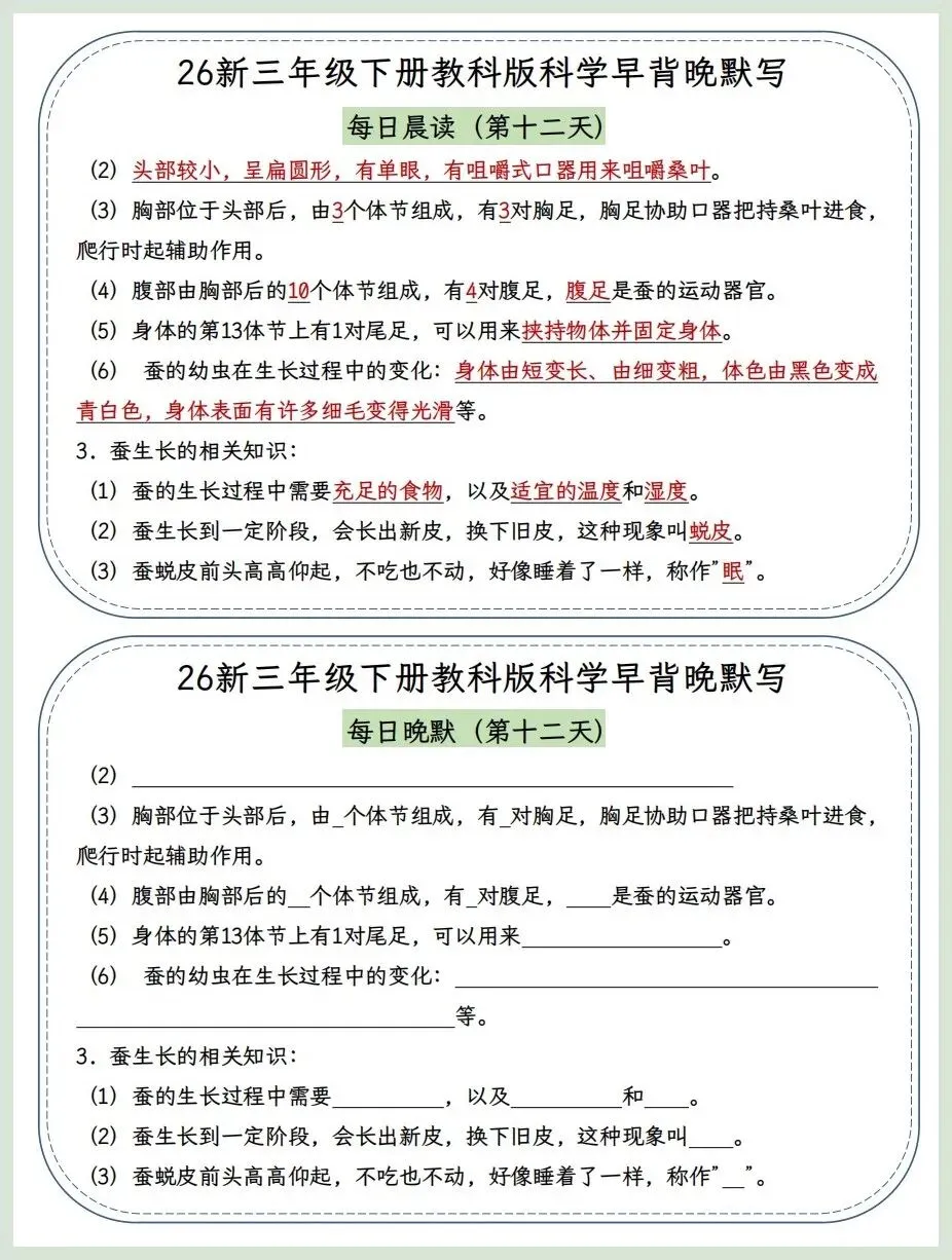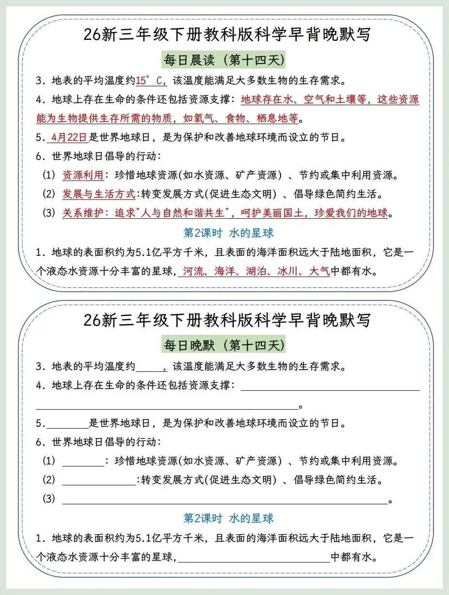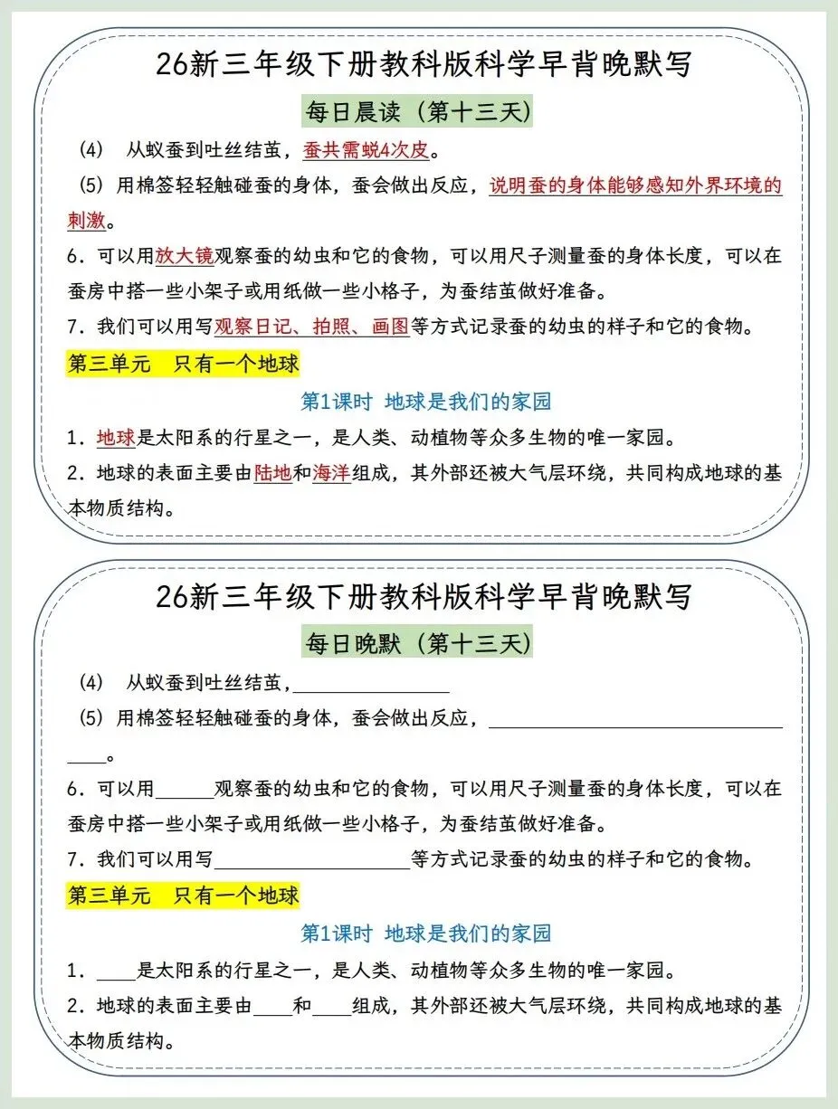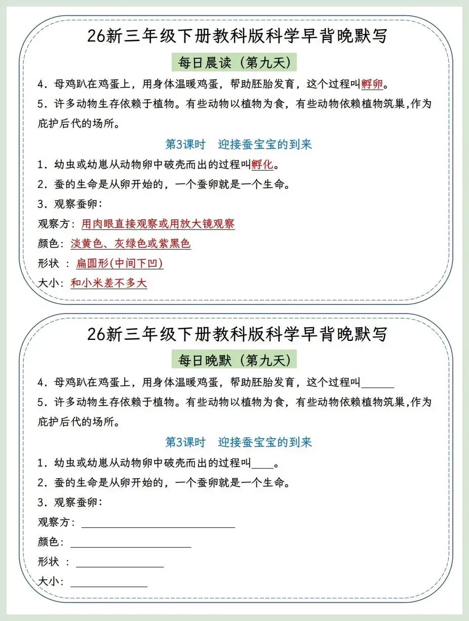 26春三年级下册教科版科学早背晚默小纸条22页【电子版可打印】 点击蓝字 关注我们 今天给大家分享:26新三年级下册教科版科学早背晚默 22页,有需要的可打印出来多练习! 文末有完整电子版领取方式 早背晚默22页 END 领取完整电子版 感谢观看❤ ①: 1-6年级全册精品资料 ③:在公众号对话框回复《 202606》 ②:关注下方公众号 仙女都在看 点点点,赞和在看都在这儿!