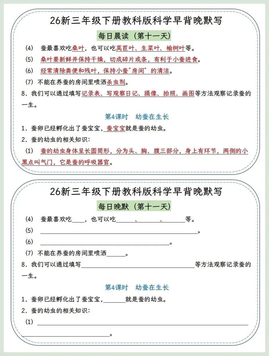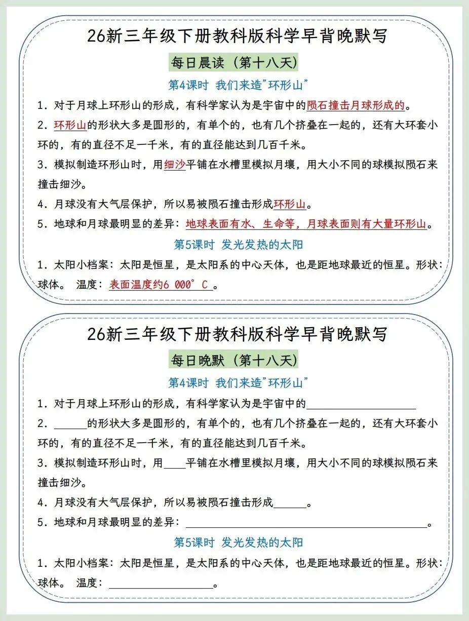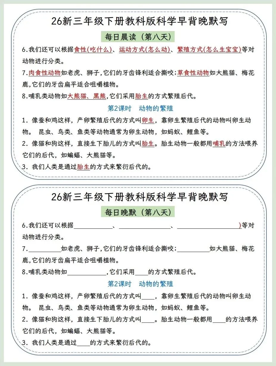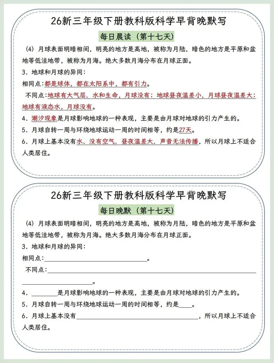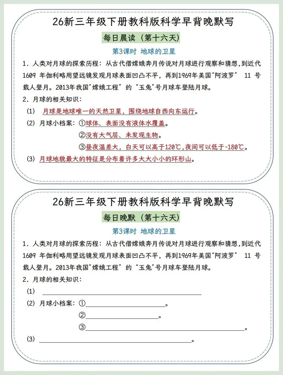 26春三年级下册教科版科学早背晚默小纸条22页【电子版可打印】 点击蓝字 关注我们 今天给大家分享:26新三年级下册教科版科学早背晚默 22页,有需要的可打印出来多练习! 文末有完整电子版领取方式 早背晚默22页 END 领取完整电子版 感谢观看❤ ①: 1-6年级全册精品资料 ③:在公众号对话框回复《 202606》 ②:关注下方公众号 仙女都在看 点点点,赞和在看都在这儿!