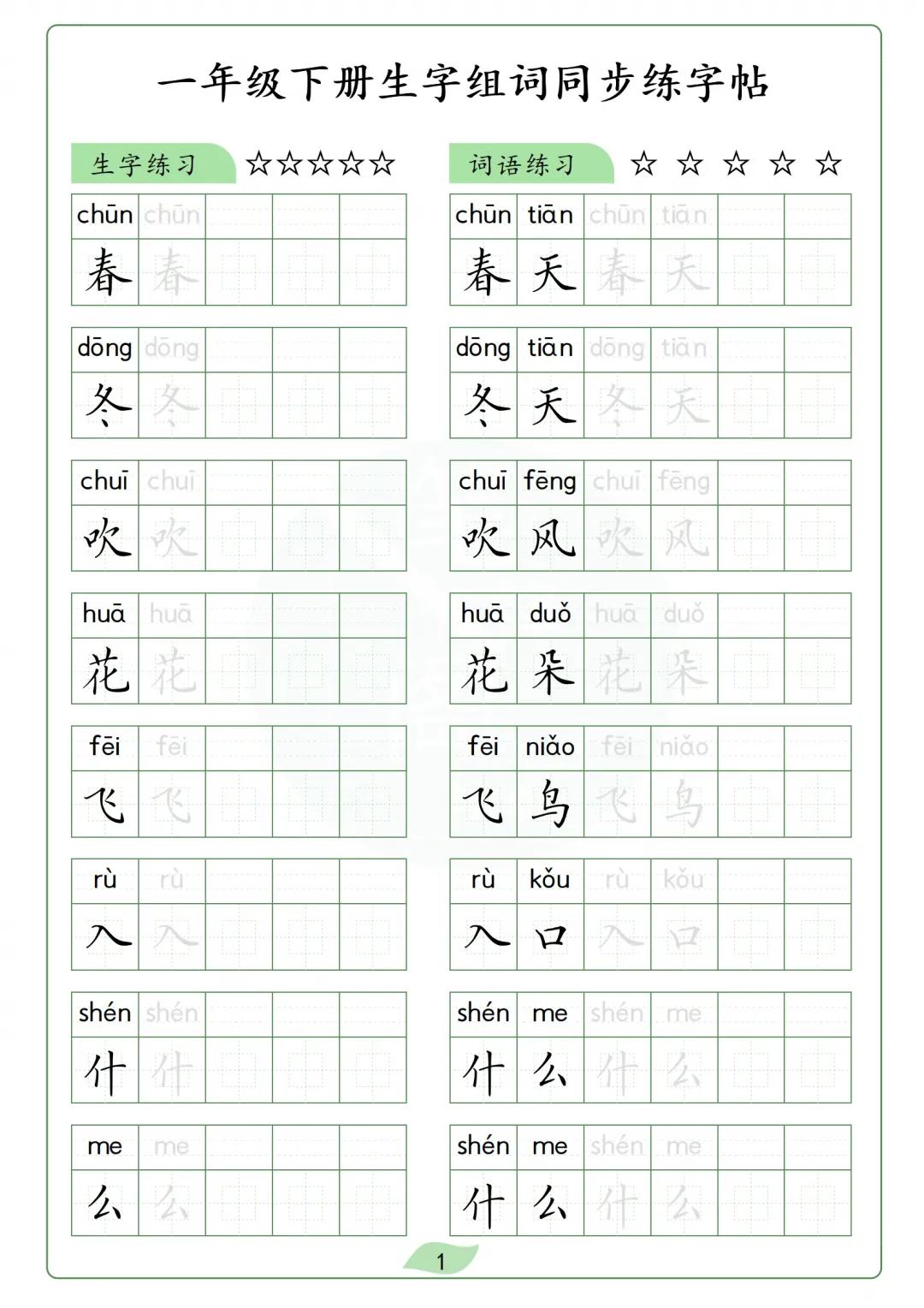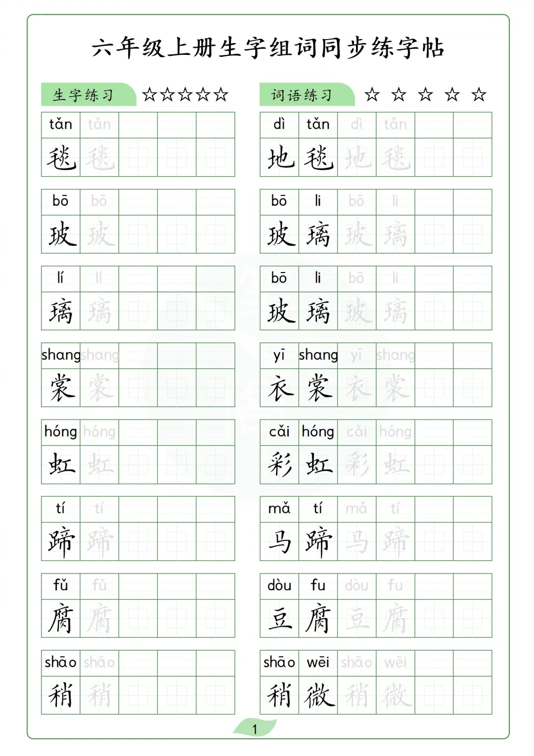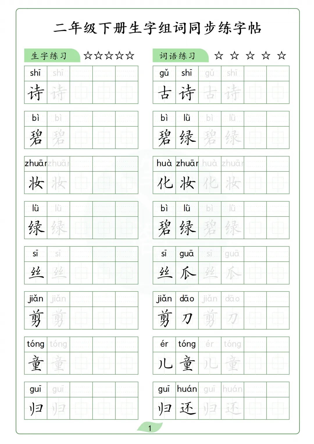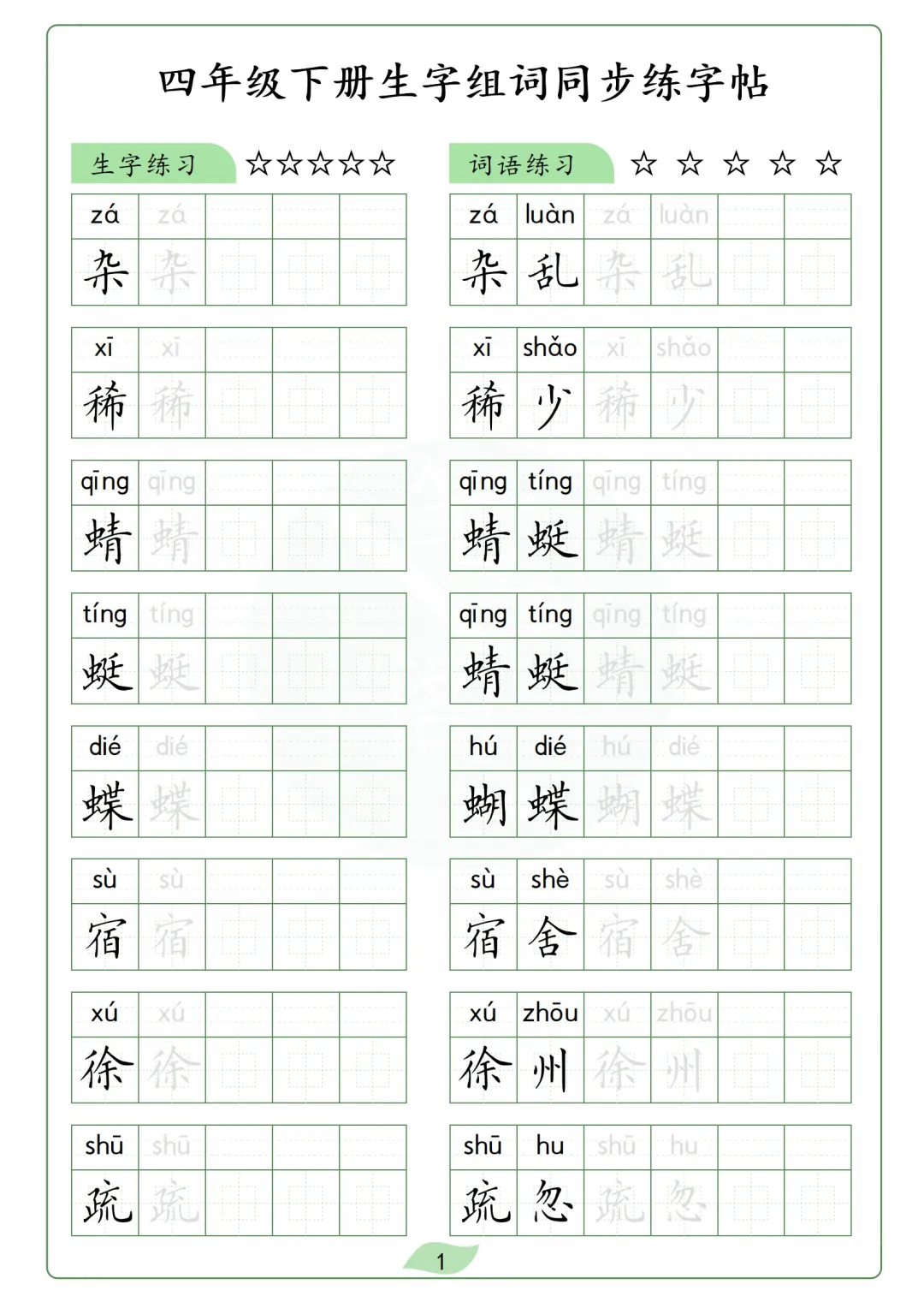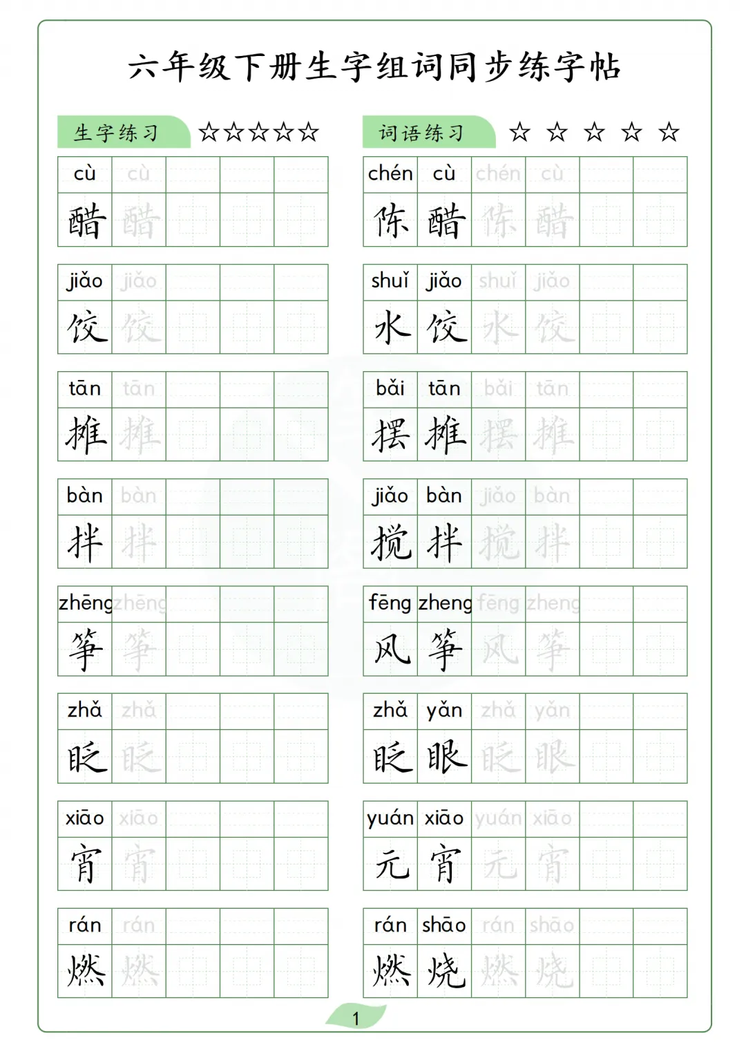 26春1-6年级下册生字组词同步练字帖 可打印电子版字帖(G04)