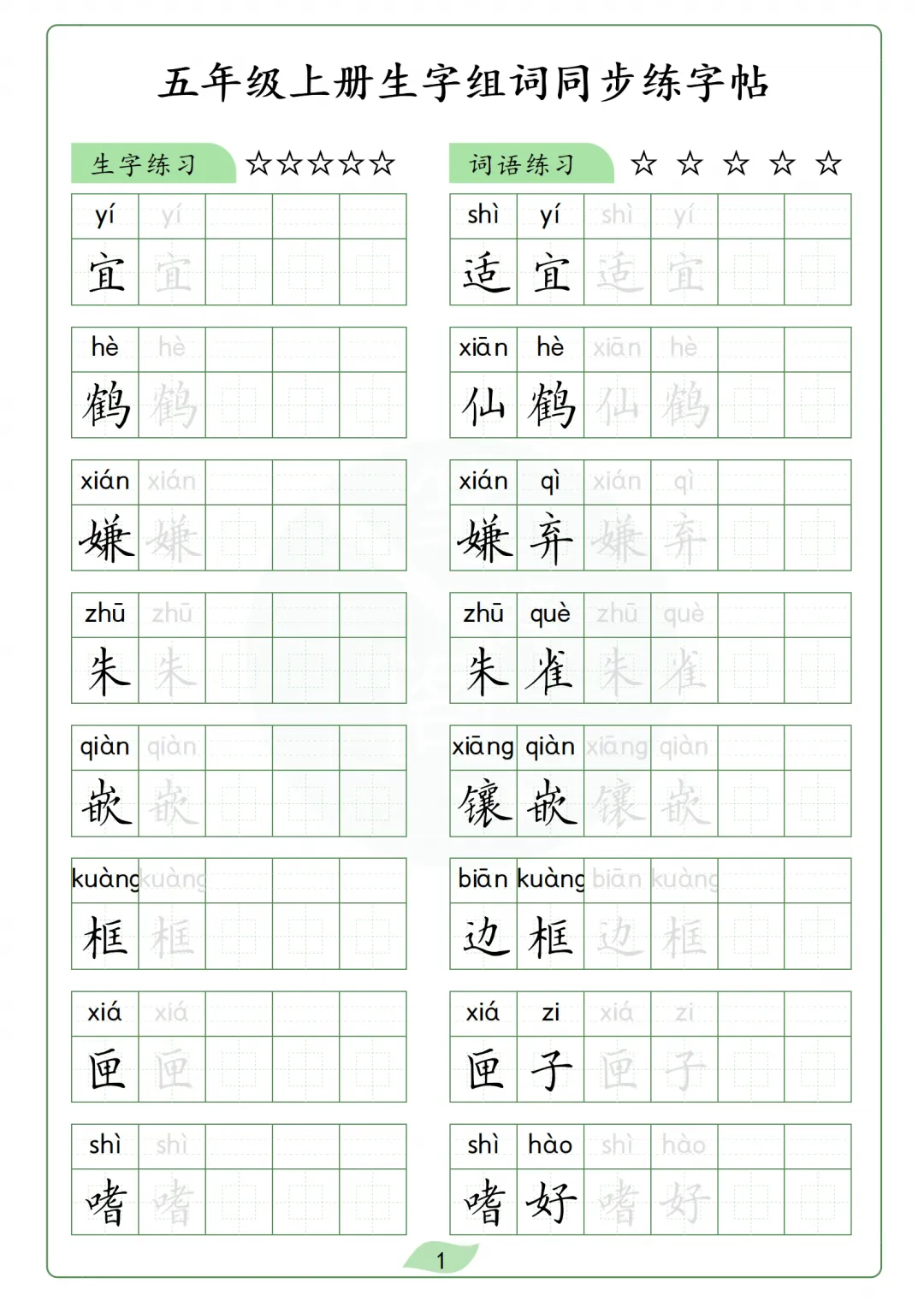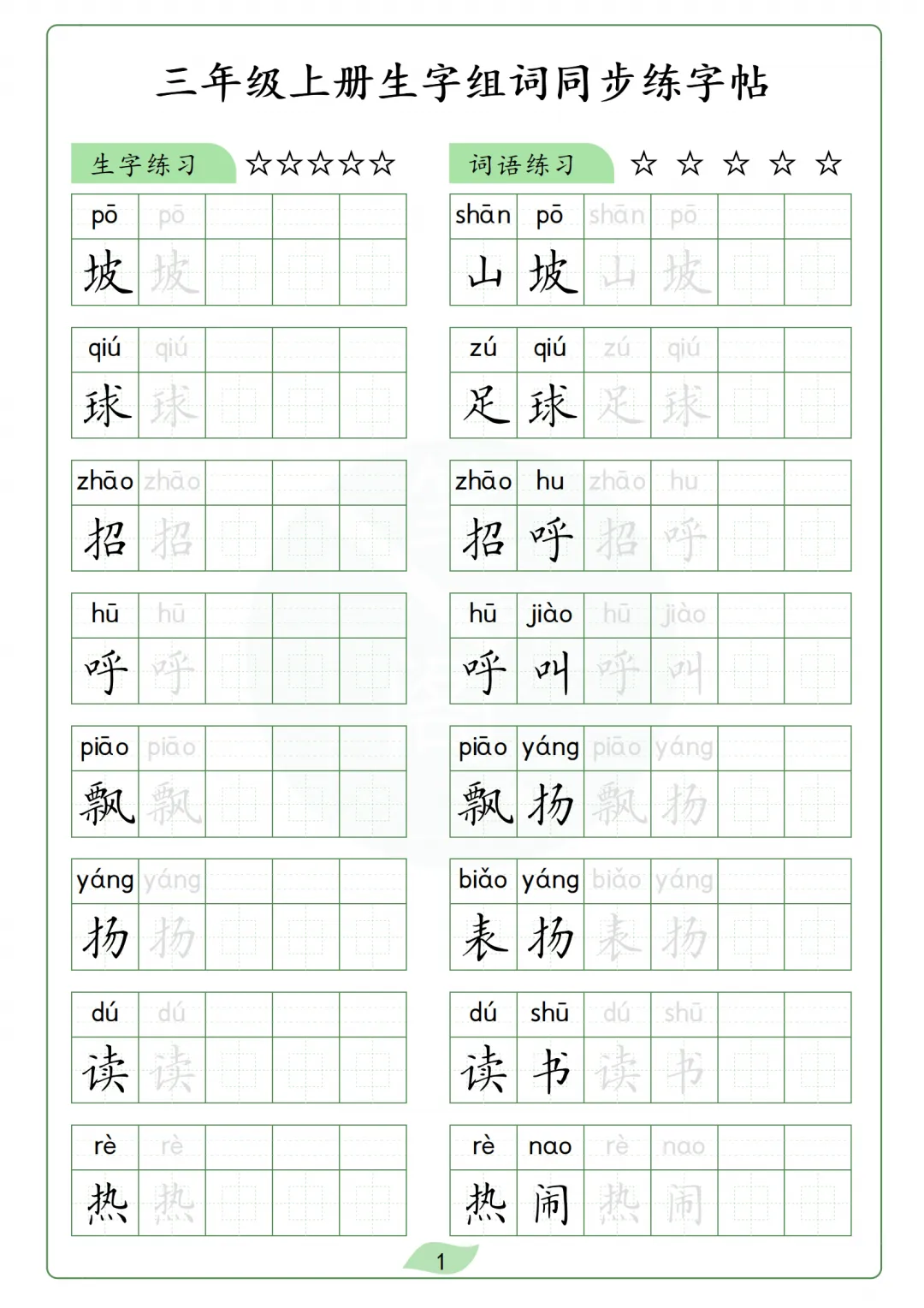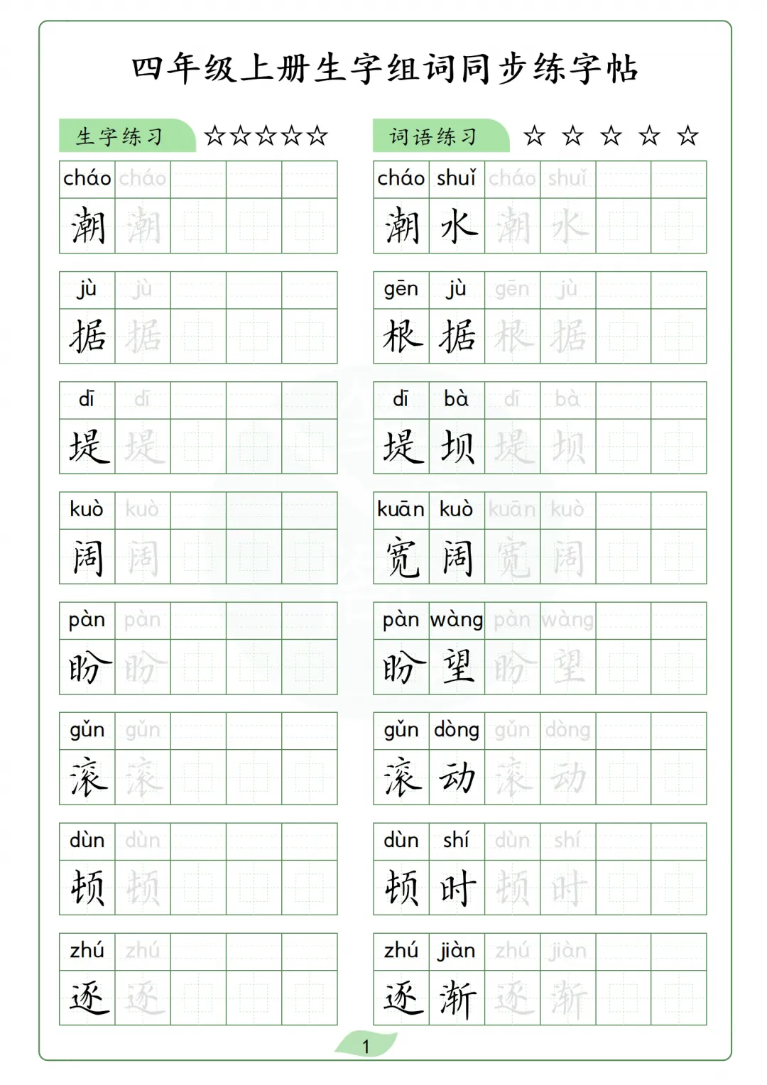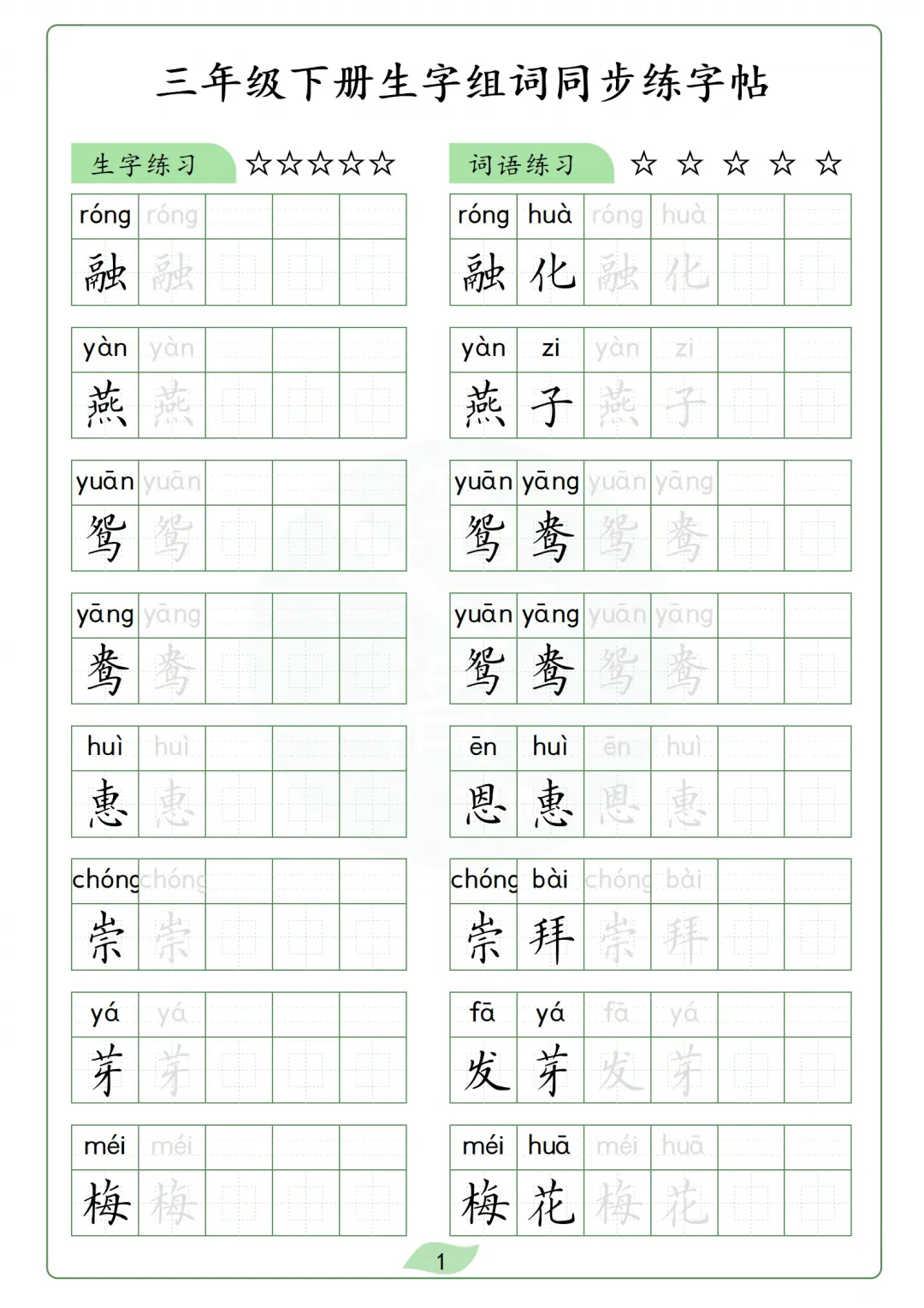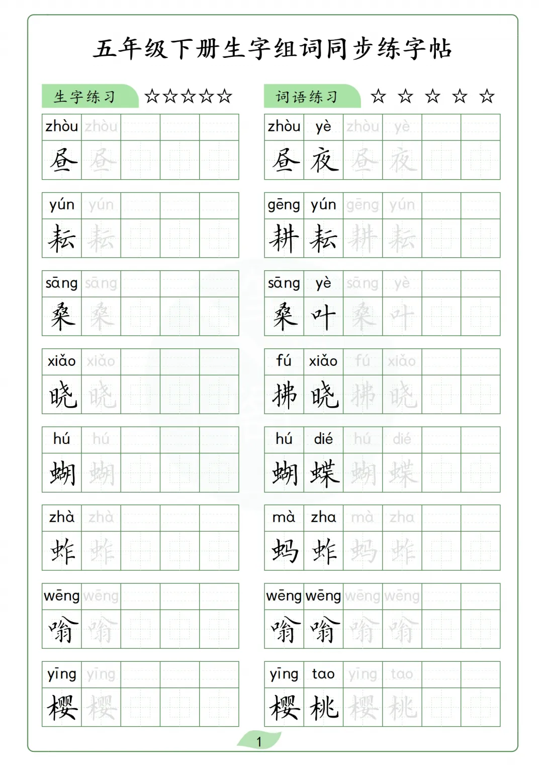 26春1-6年级下册生字组词同步练字帖 可打印电子版字帖(G04)