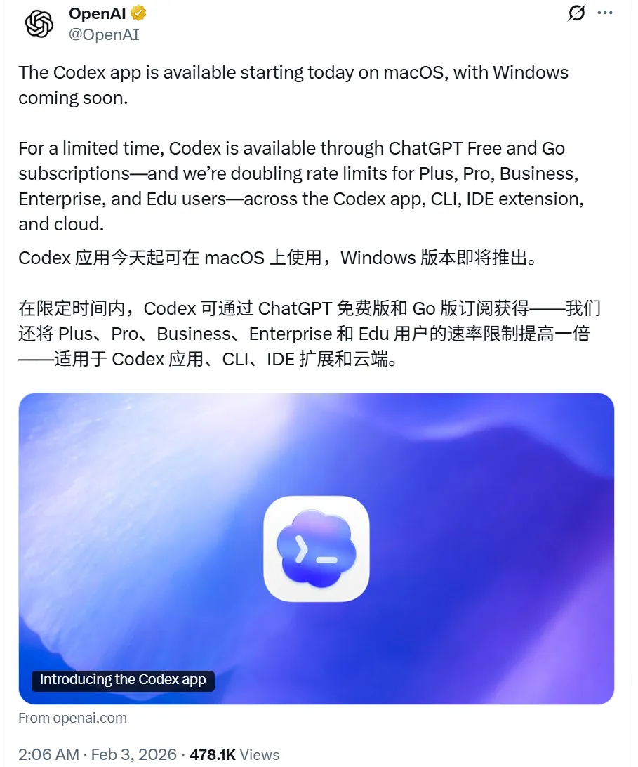这一步不只是”让 Codex 更好用”,是让 Codex 搭上 ChatGPT 的流量。