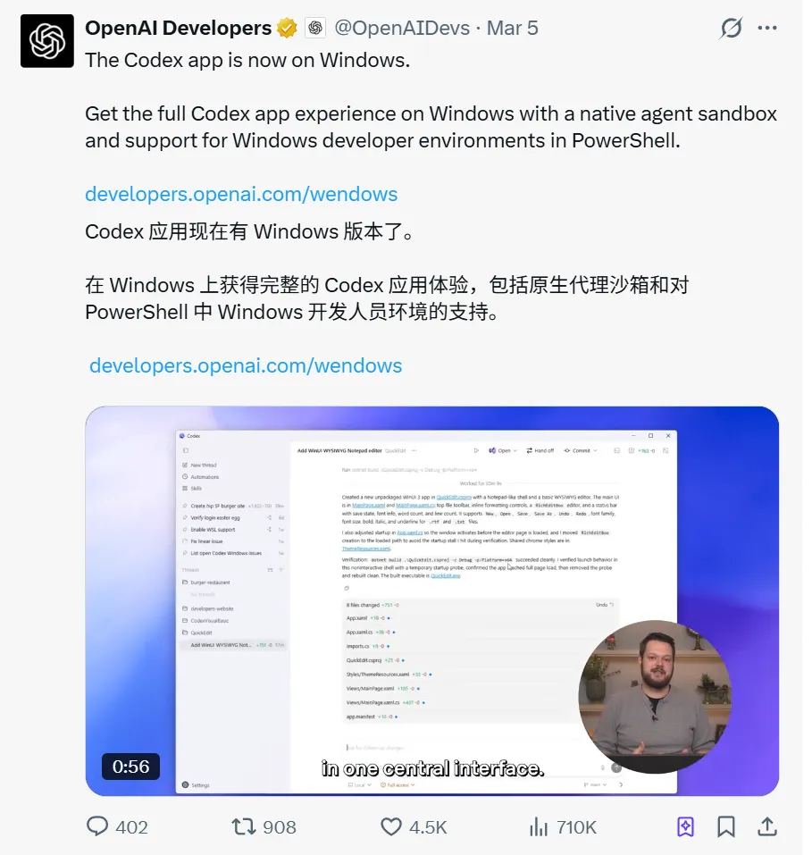 把 Codex 塞进 ChatGPT 的超级 APP 里,等于把 4 亿用户的入口直接对接上了代码能力。用户不用专门找 Codex,它就在那儿。