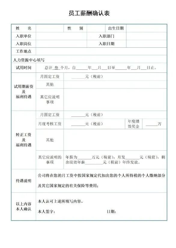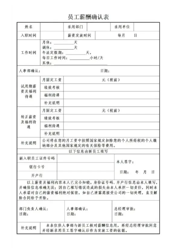 本文内容分享【薪酬确认表模板】(文末可免费领取word电子版)