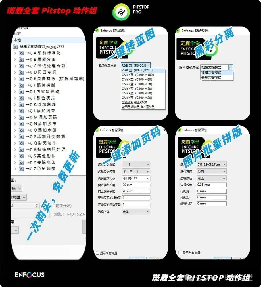 从第1个脚本问世,到现在的300多个脚本,去水印,页面处理、转蓝图、页面拼版、黑彩分离、添加页码、添加图章、封面制作,扫描件处理等,还是那句话我们关注印前的一切,持续更新…