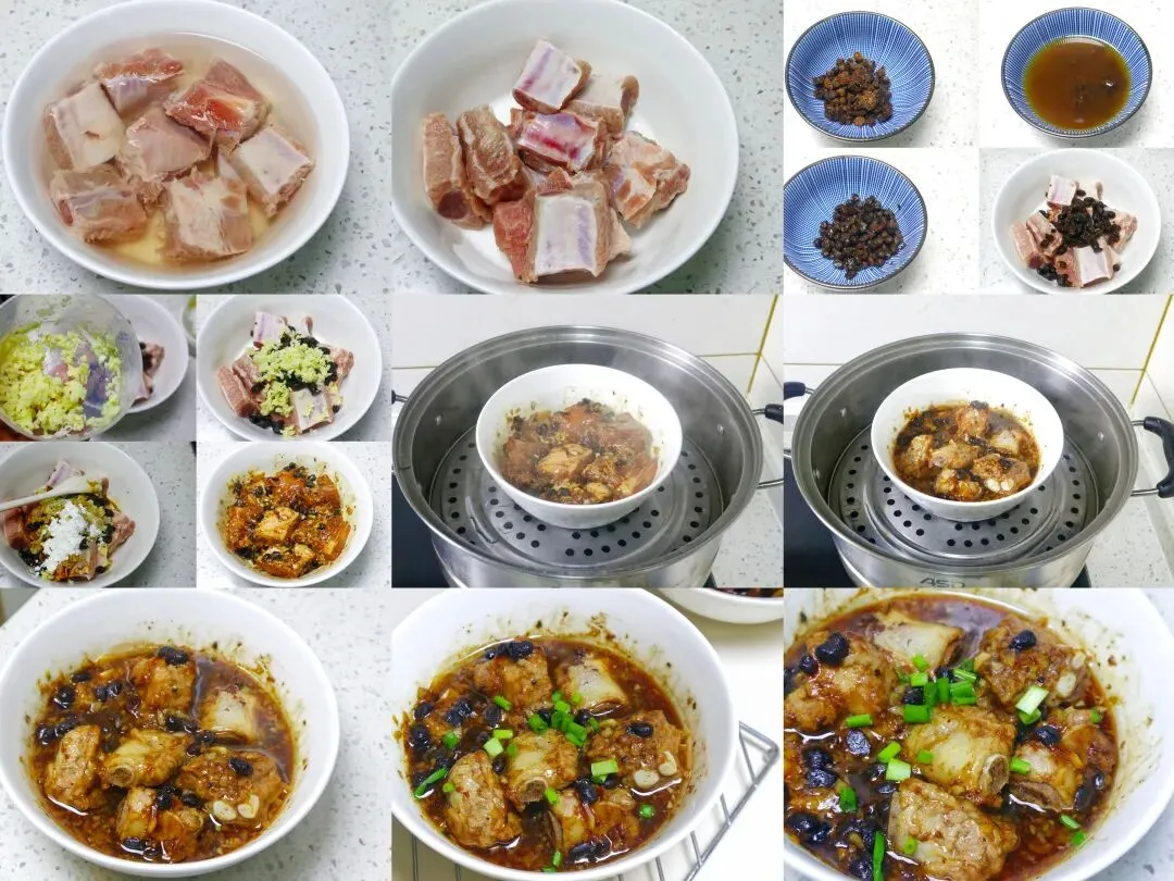 豆豉蒸排骨的具体做法:1、排骨让老板剁成了小块,然后冲洗干净,再放入清水中浸泡10分钟,泡出里面的血水。2、接着之后捞出控干水分,再放入大碗中备用。3、准备一小把豆豉,我觉得太咸了太干了,用水淘洗了两遍,控干水分后放到排骨碗中。4、接着准备点大蒜去皮,搅成蒜末,放入装排骨的碗中,接着加适量生抽、少许白胡椒粉、一点点味精,再放入一勺淀粉,用手抓拌均匀,最后再淋入一勺花生油,再次抓匀,锁住排骨的水分,腌制20分钟,让排骨充分入味。5、蒸锅中加入足量清水,大火烧开,水开后将排骨碗放入蒸锅中。如果你蒸的比较多,用盘子更好,这样铺一层排骨容易熟。6、盖上锅盖,转中火蒸25-30分钟,直到排骨完全软烂,关火后焖2分钟。7、然后取出来。8、再撒点小香葱就可以吃了,鲜香入味、肉质软嫩,真的特别下米饭