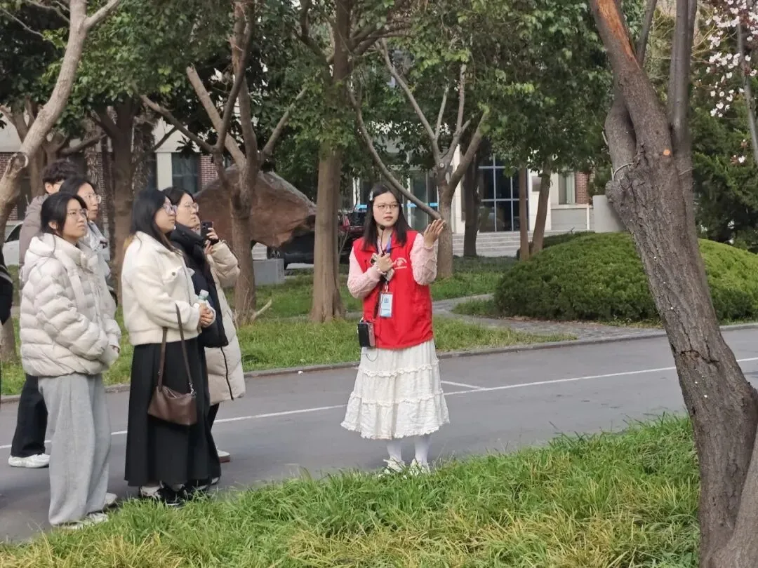 在春风轻拂、绿意初萌的“草木讲堂”户外科普活动中,讲解员身着醒目的红色志愿马甲,站在步道旁,带领同学们认识了许多草木,如花蕾能疏肝解郁的美人梅;攀援向上、能活血通经的凌霄;叶片如扇形、有着“活化石”美誉的银杏树;枝干苍劲、果实可强筋健骨的杜仲;早春先花后叶、洁白高洁的望春玉兰;针叶苍劲、可祛风除湿的油松;可解毒消肿的乌桕;花型多样、被誉为“花中皇后”的月季;四季常青、可祛风明目的女贞;花团锦簇、象征亲情的紫荆花;可润肺清心、养阴生津的麦冬……讲解员用生动的语调,让枯燥的知识点在鲜活的场景里变得可感可知。