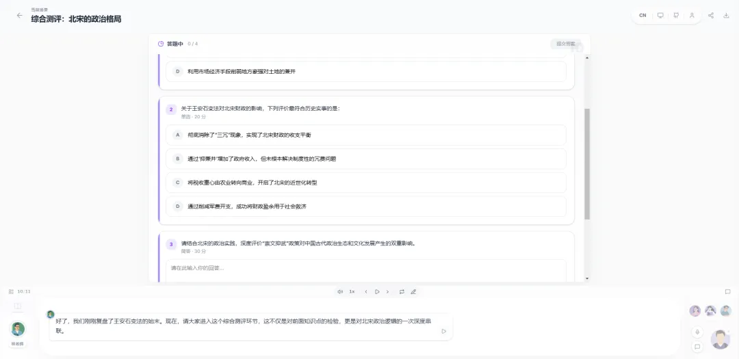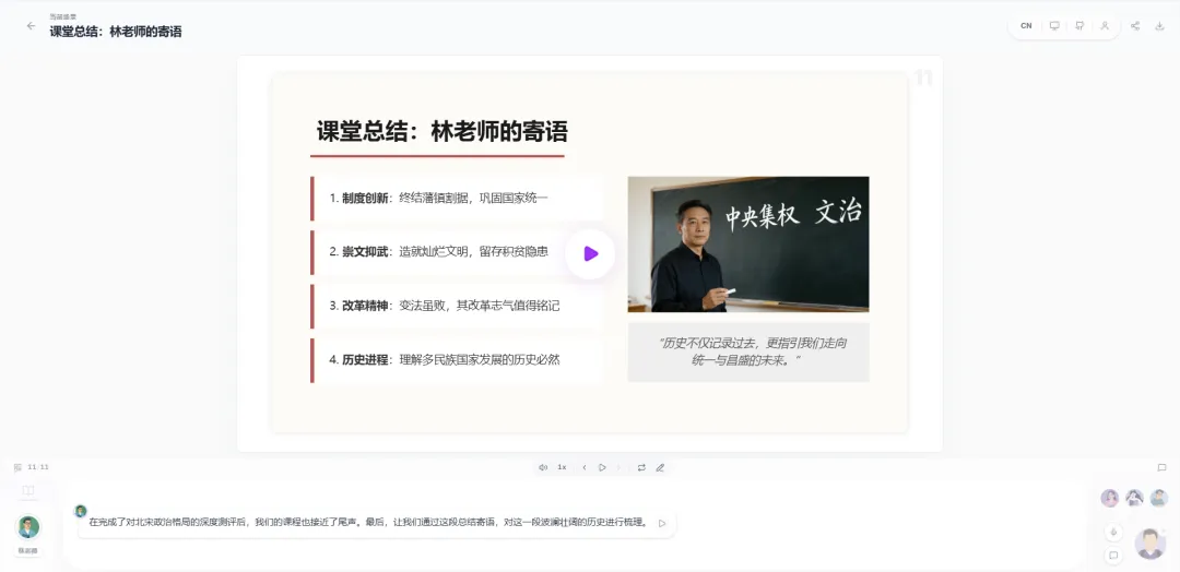点击”播放”,AI教师开始授课。您可以: