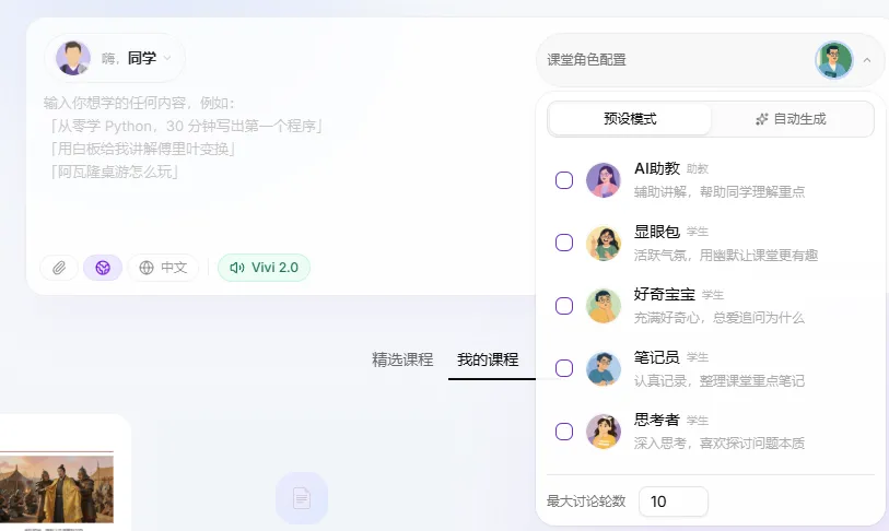 🎭 扮演不同角色(学霸/杠精/小白),丰富课堂氛围