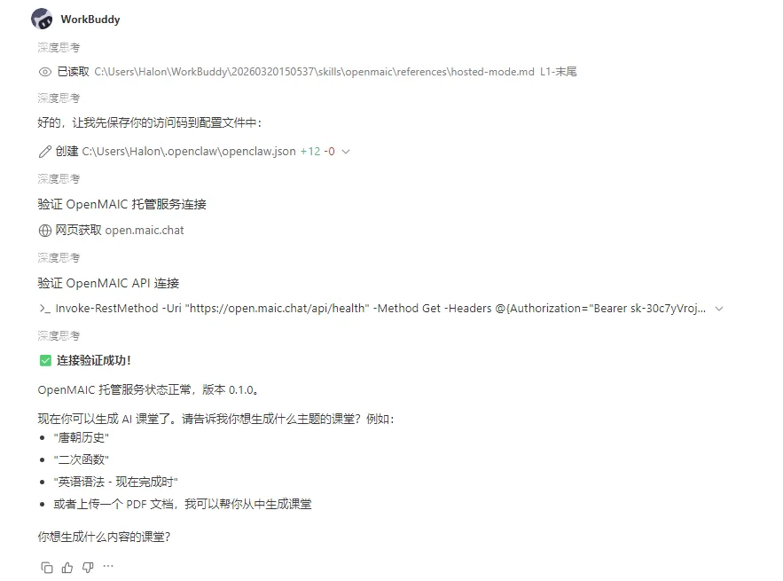 例如,我将它部署在我的WorkBuddy(腾讯版小龙虾)上了,就不用每次都登陆到网页端了