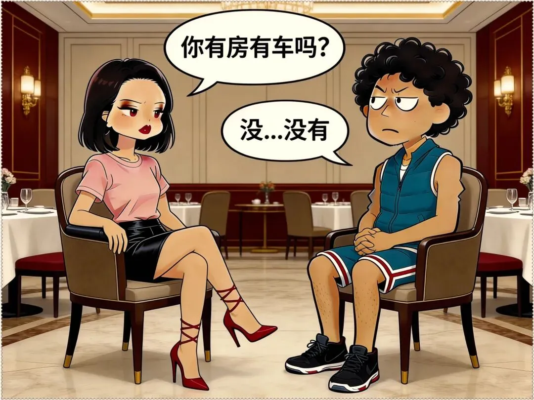 趣味漫画:相亲现场,女:你有房有车吗?男:没有,女:那没必要谈了,男:等等,我有8个姐姐,3个妹妹,女:老公,你怎么不早说!