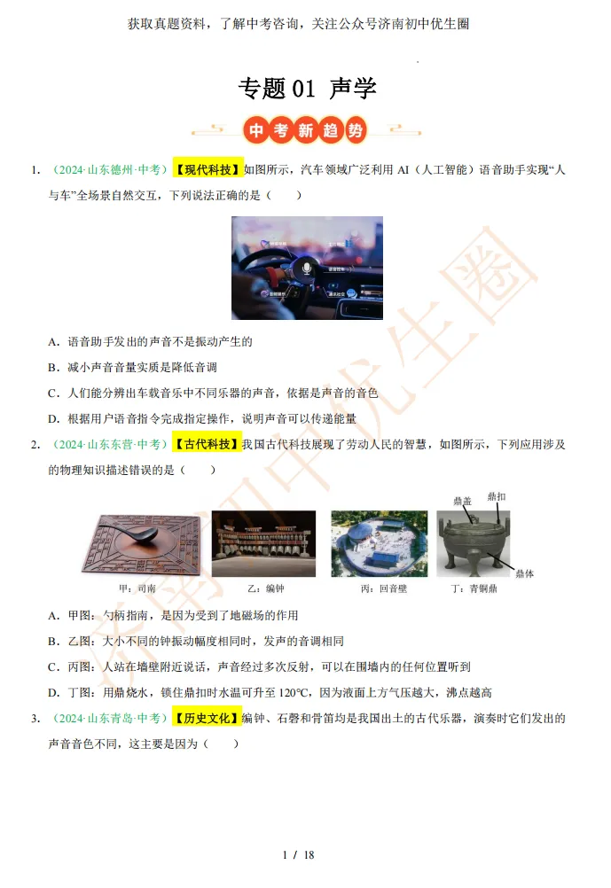 今天小初老师给大家整理济南中考物理专题汇总,大家可以下载练习。PDF高清版,可以扫描下方二维码免费获取!