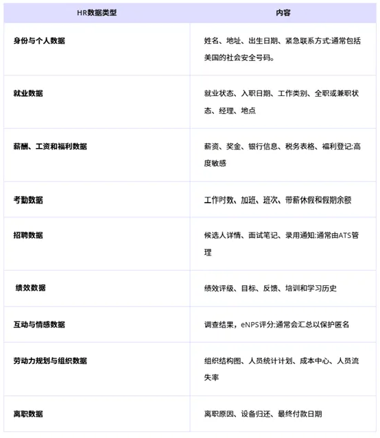 以下是常见人力资源数据类型的概述: